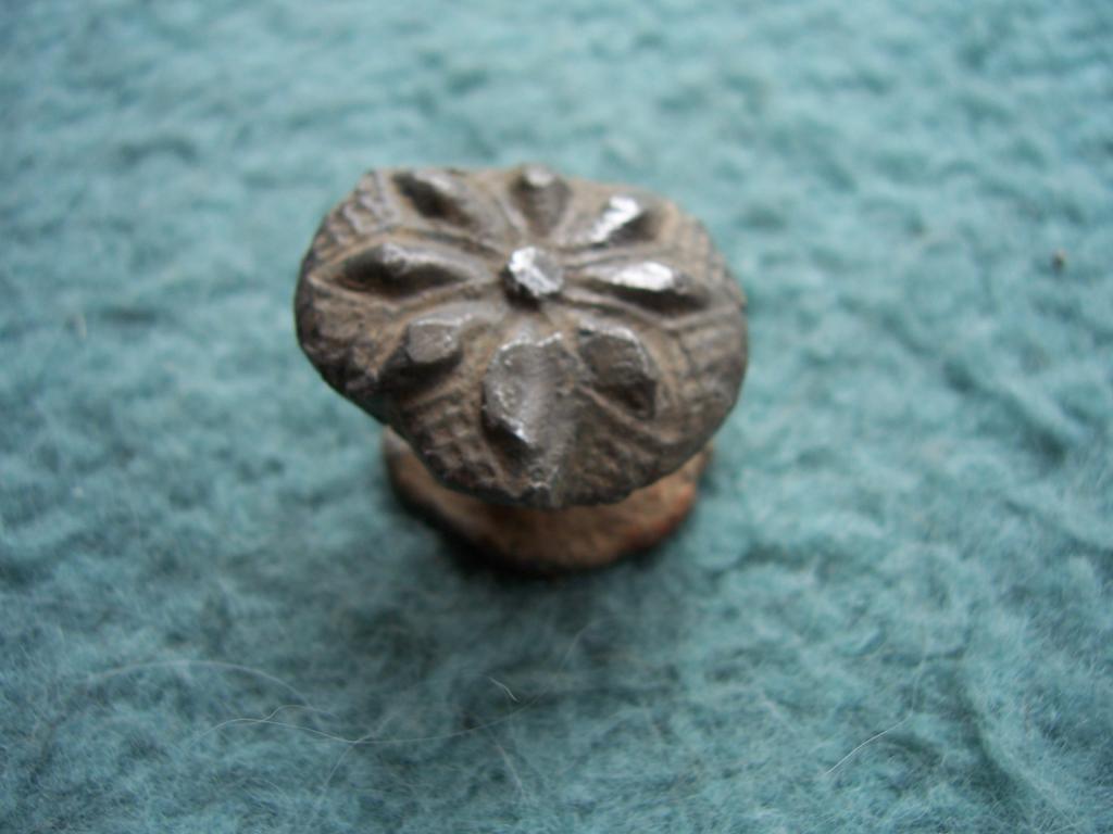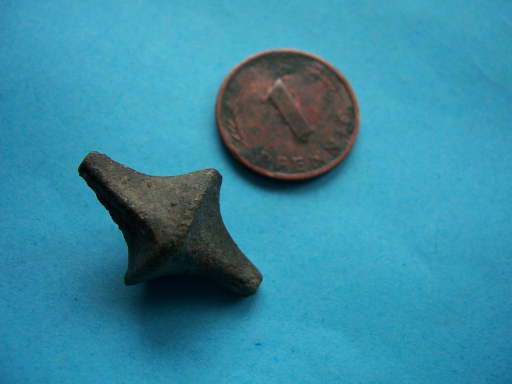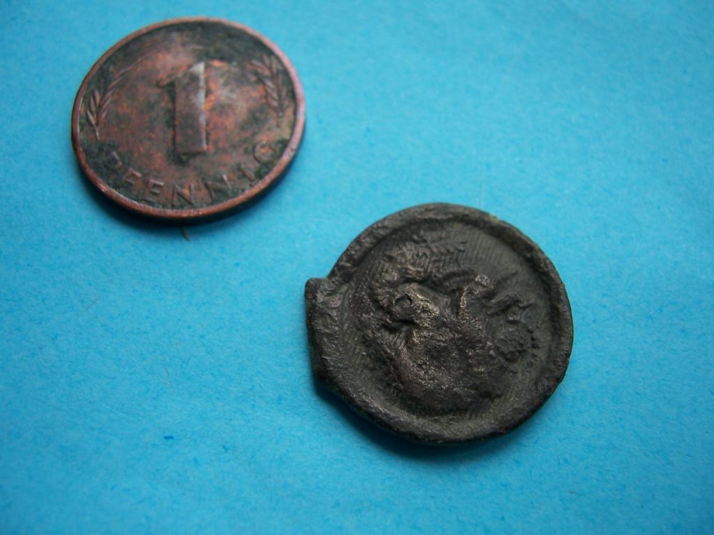 Bild Nummer 1/2 ist ein sehr schöner Doppelknopf aus Blei, spätes MA - FNZ. Die Dinger gibt es auch im römischen Kontext, sind dann aber aus Bronze und anders oder gar nicht verziert.
