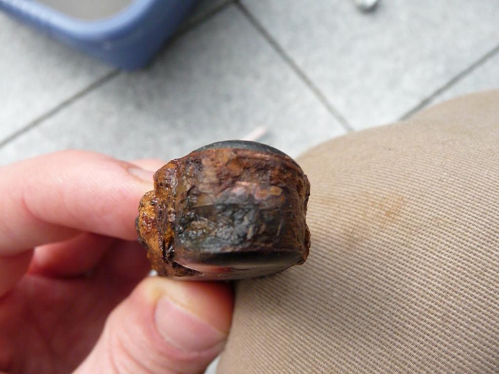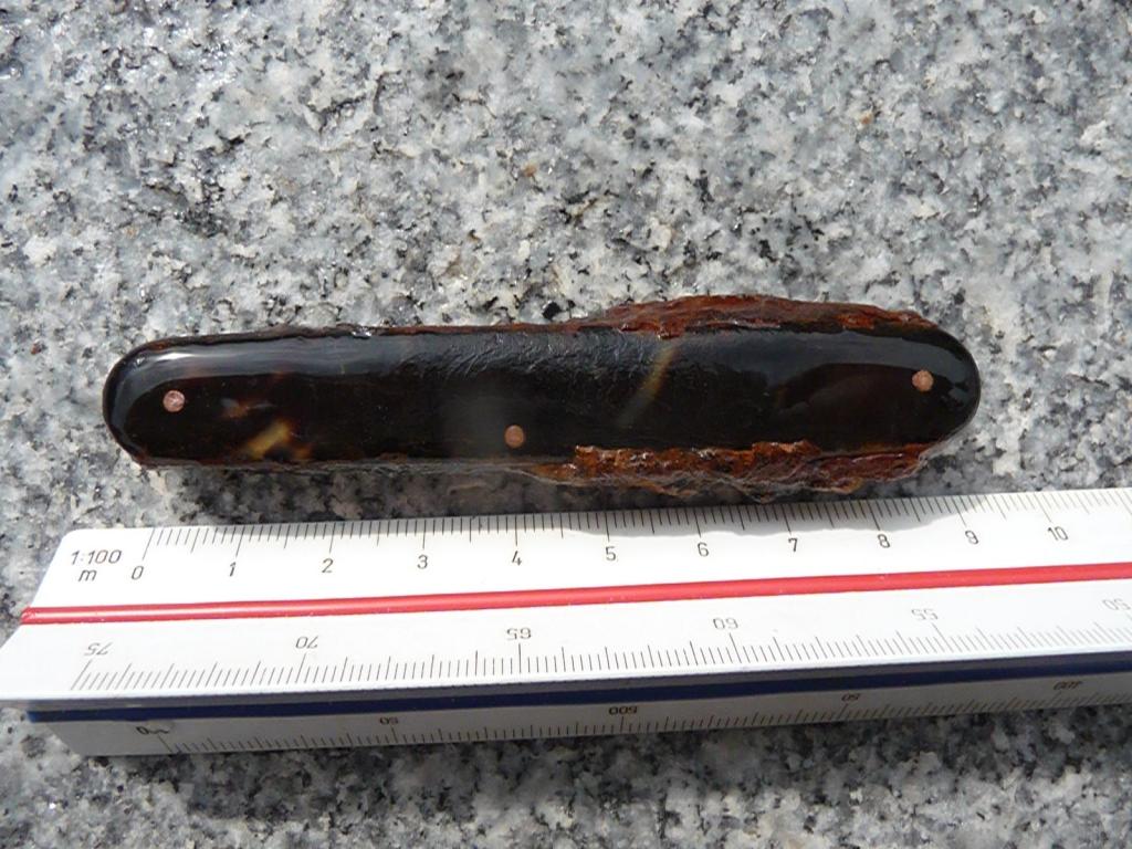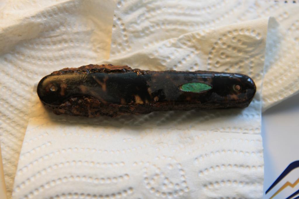 Ich hab heut glücklicherweise dieses Messer ausgebuddelt, dachte erst es sei ein Granatsplitter, so viel Eisen war da.