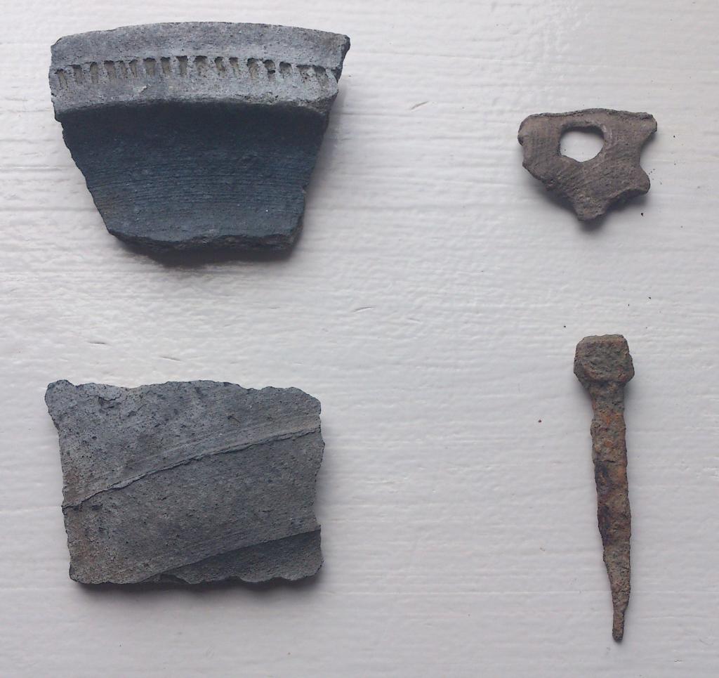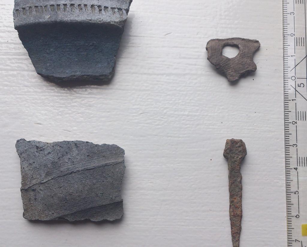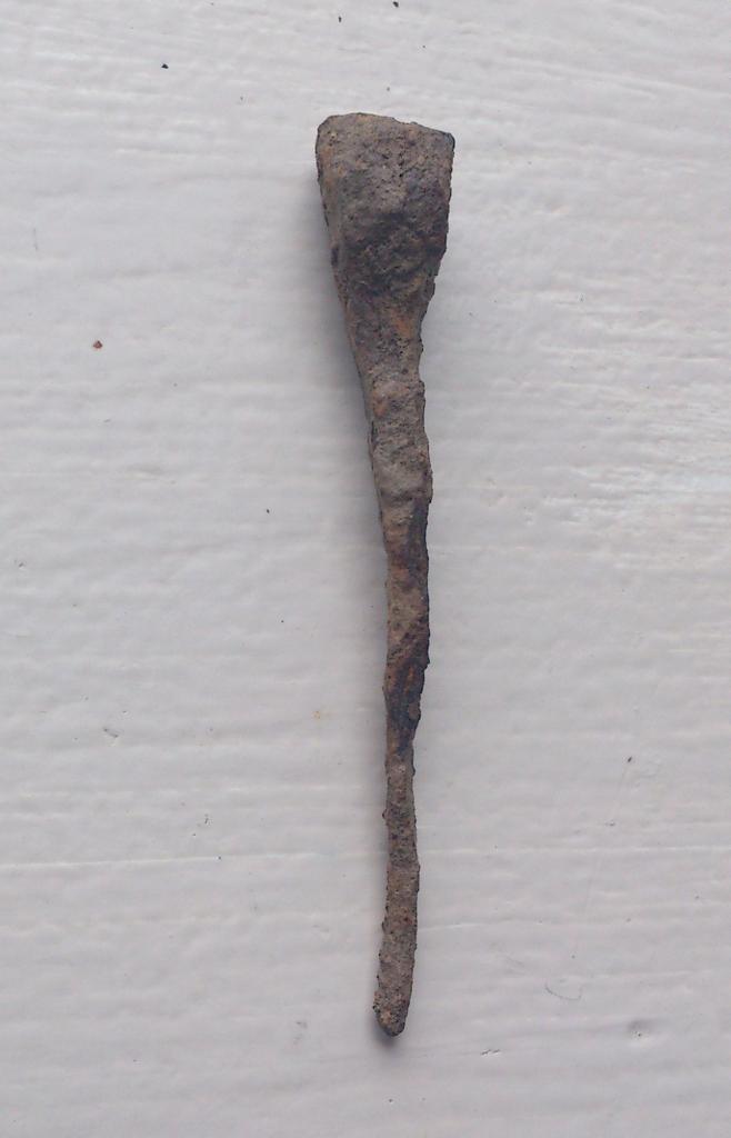 Hier noch die Beifunde vom Reiterpfennig. Nagel oder Nadel, was meint ihr? Das Teil ist 5cm lang. Das andere Ufo ist aus Blei und offensichtich bearbeitet, hat da jemand eine Idee dazu? An der Fundstelle kam bisher nur MA. Danke schonmal. MfG Globe