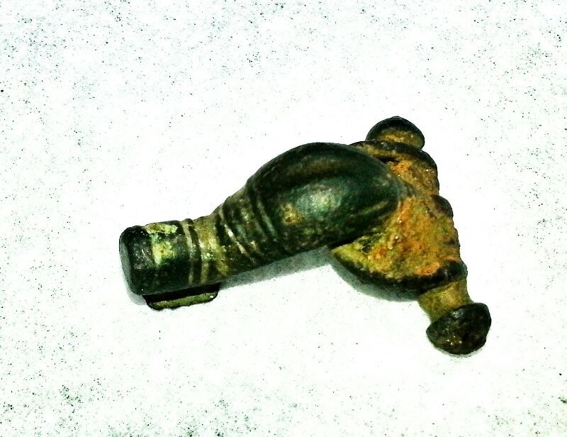 Sieht mir nach einer einer Kniefibel, eher Römisch irgendwo um 0-200 n. Chr. aus.