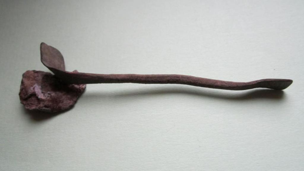 Diesen Spatel aus Bronze(7cm) fand ich zusammen mit den perlmutt schimmernden Glasstückchen(2cm).Kann man den aufgrund naheliegender