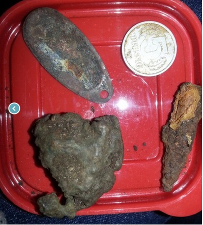 Bis auf das Projektil sieht das schwer nach Fundkomplex Badestrand,oder Angelstelle aus .