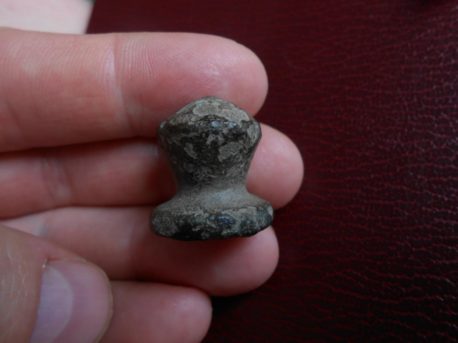 Bei den anderen Objekten hab ich weniger Ahnung. Das massive, knauffömige Bronzeteil könnte interessant sein (Loch ist nur ein paar mm tief).