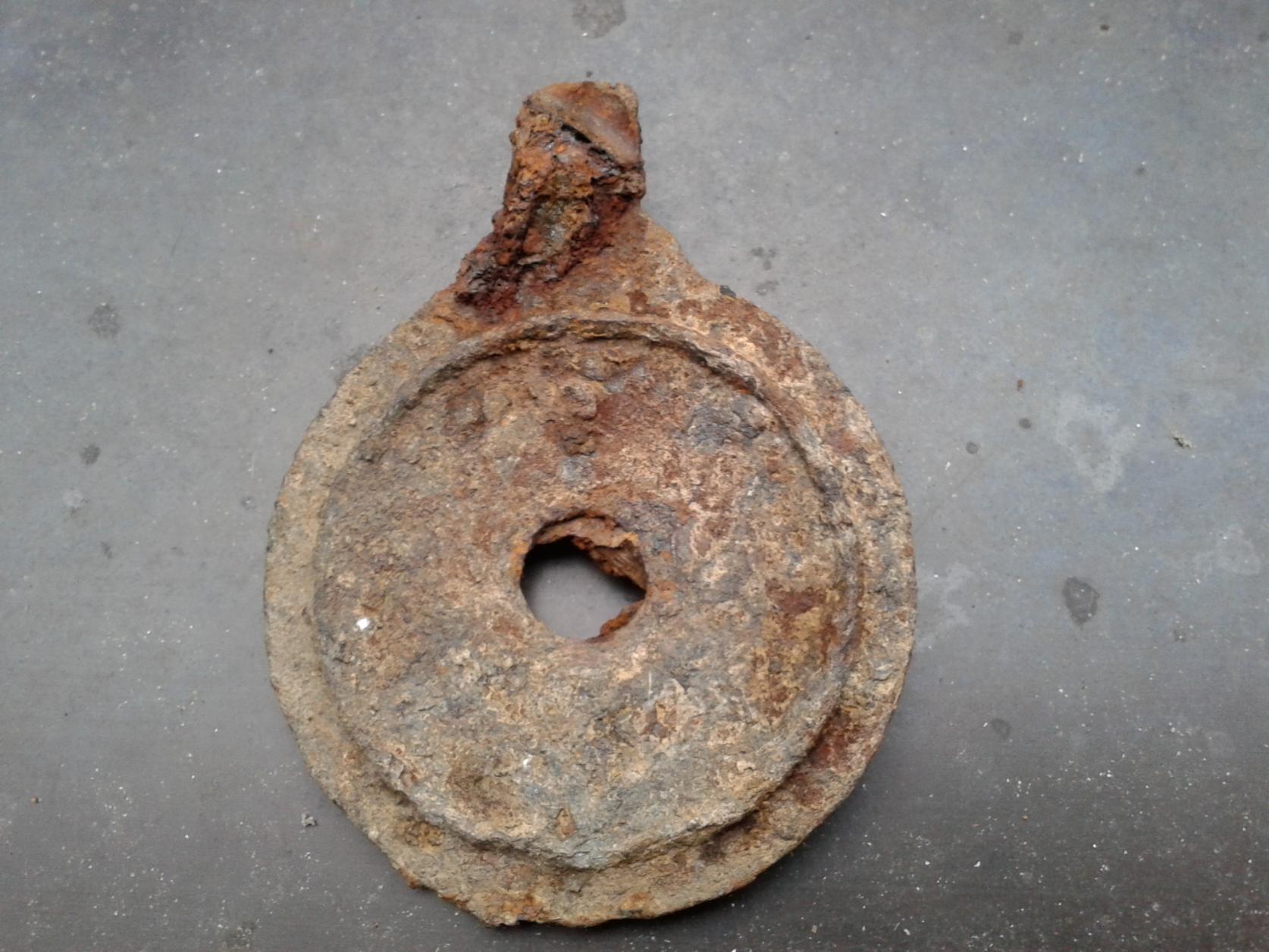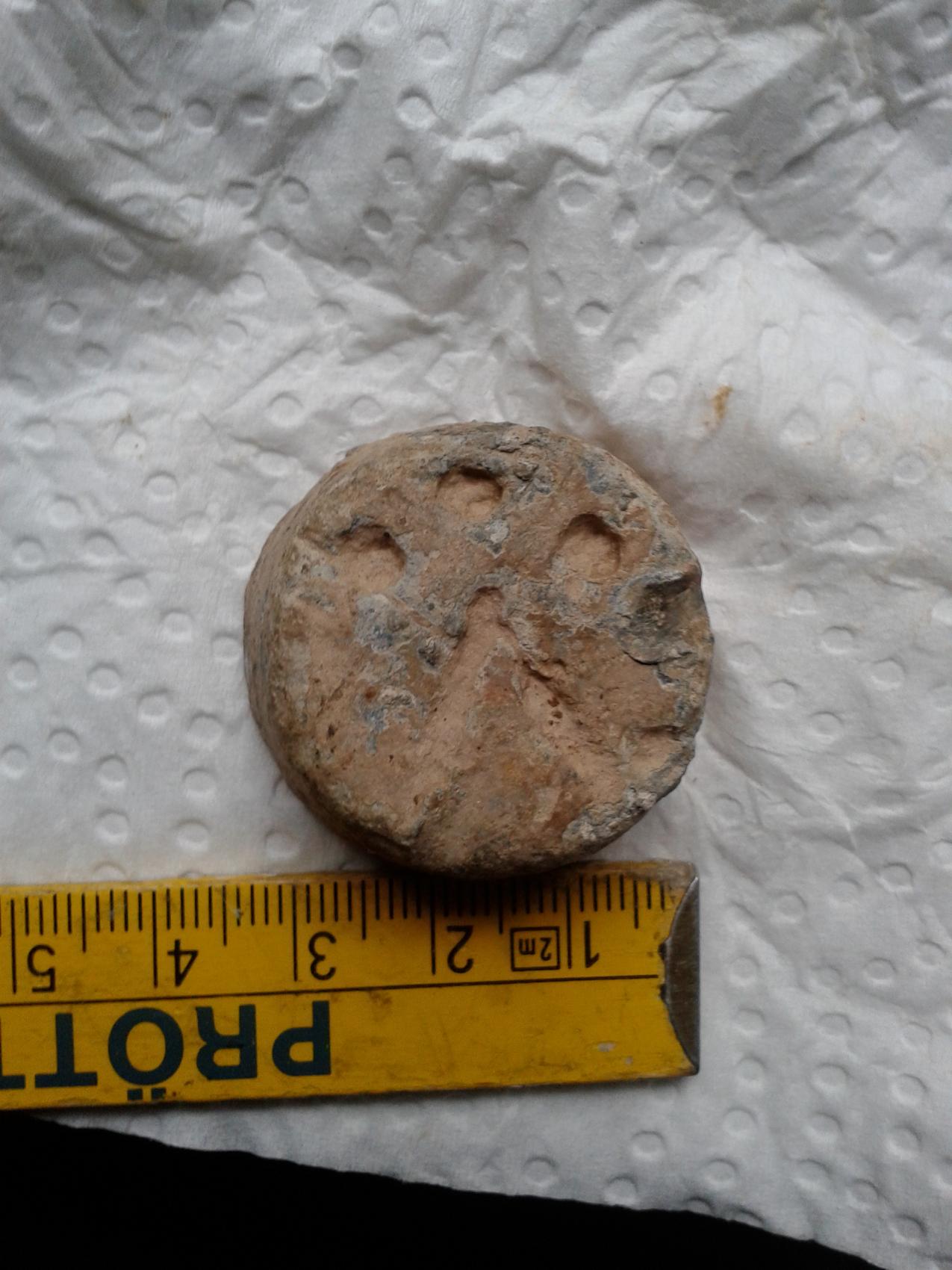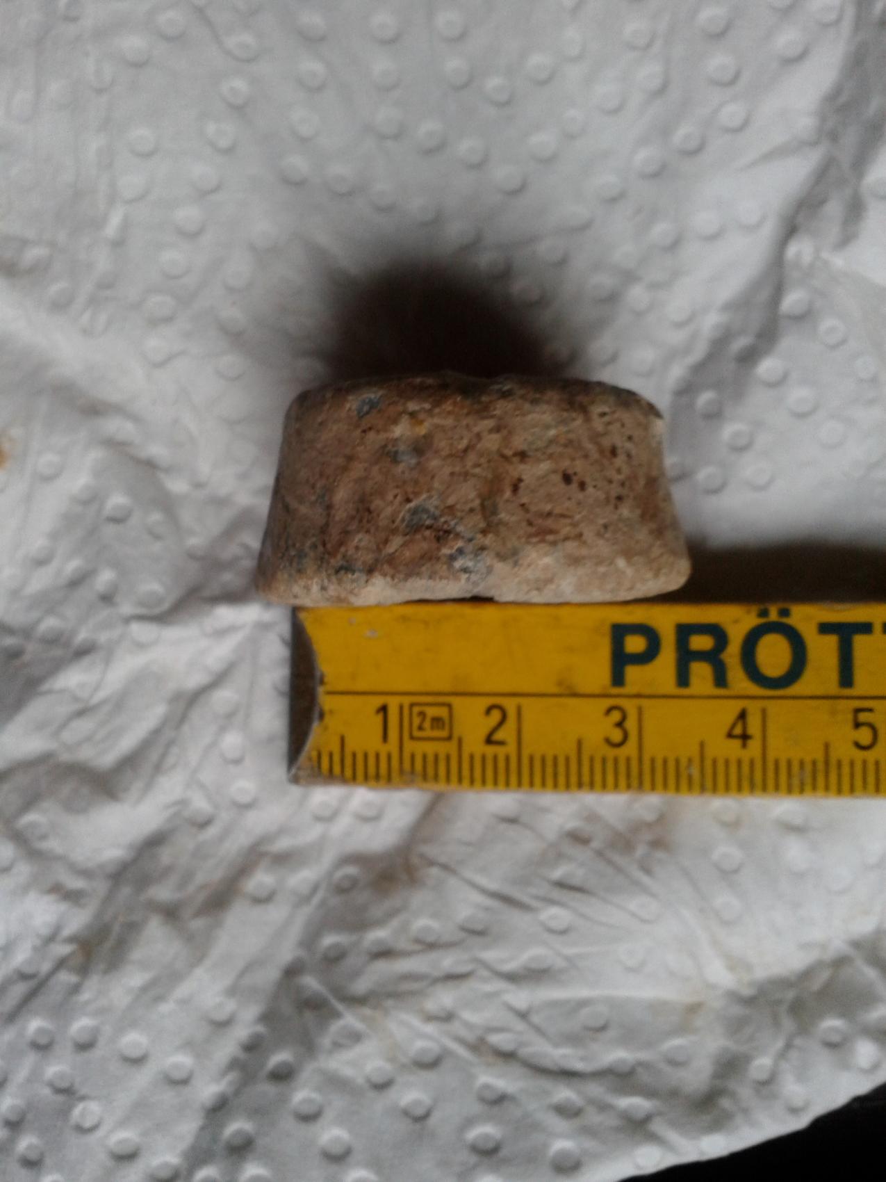 Bild 1 und 2: Vermutlich blei. Wie man sehen kann von der Form her nach unten bzw oben (nichtmal das weiß ich) verjüngend. Interessant dieses Muster - vlt hilft es jemandem von euch.