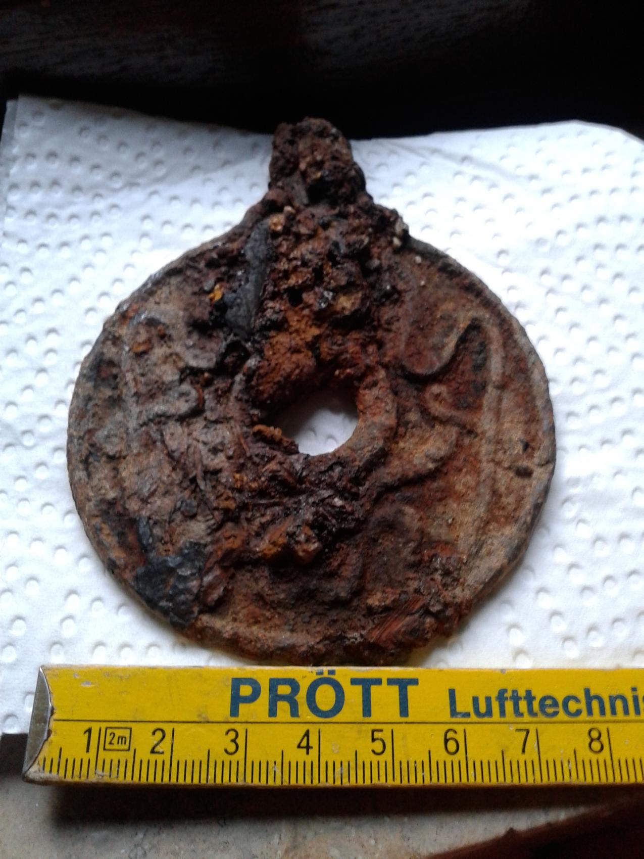 Bild 5 und 6: Rückseite für sich genommen leer, dafür Verzierungen auf der Vorderseite. Meine ja Schlangen zu erkennen. Für mich interessant, von wann es ist, was es ist und was man wirklich drauf sieht