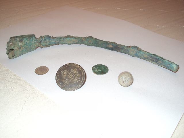 Hallo Schatzsuchergemeinde, war heute mal wieder auf dem Feld... nichts von Bedeutung 5/10 Kreutzer (1858), 2 Pfenning (1874), Musketenkugel,nen schönen Knopf und das UFO. Hat eventuell jemand ne Ahnung was das UFO (ca. 25 cm lang) sein könnt und wie alt der Knopf ist bzw. ob das ein Trachtenknof ist. Vielen Dank und euch allen gut Fund