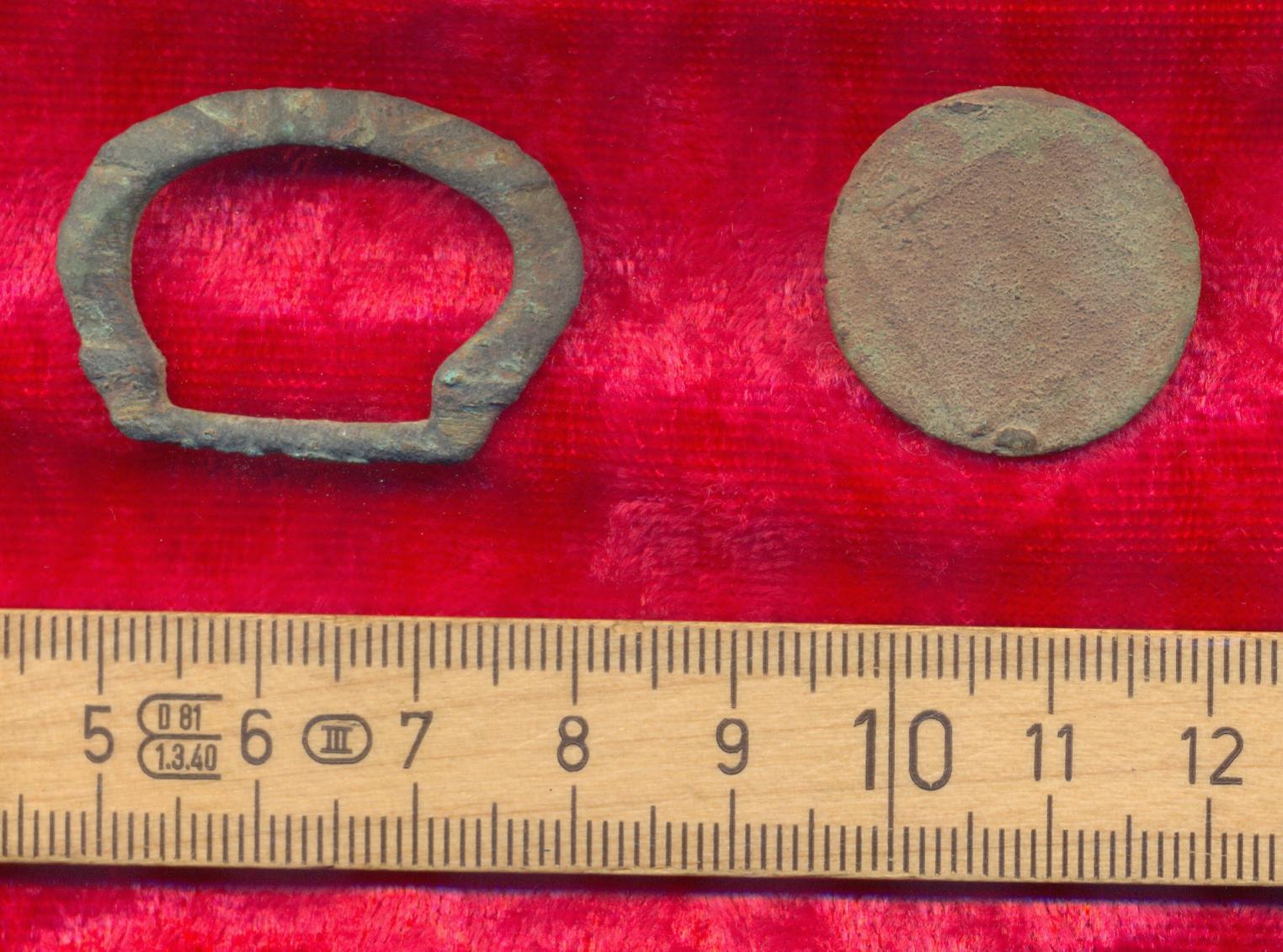 Was haltet Ihr von der Schnalle und wie könnte diese datiert werden? Habe noch kein Vergleichsstück gesehen (oder aber übersehen). Vom Bauch her würde ich sie ein wenig älter als die Münze einordnen.