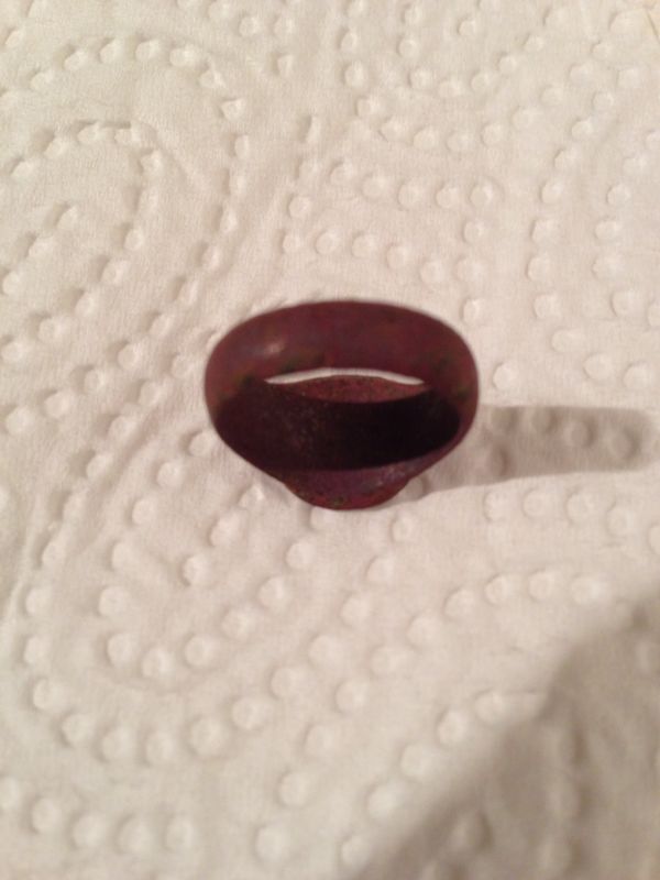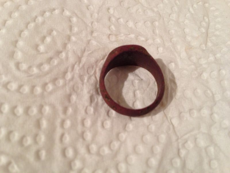 Wir haben heute diesen Ring gefunden. Bei uns Erwachsenen, geht er maximal nur über den kleinen Finger. IØ 1,5cm, Außenmaß 1,7cm. Es dürfte wohl ein Ring für Kinder gewesen sein !?