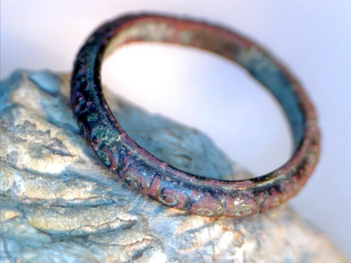 habe diesen Ring (eher Ringlein mit Innendurchmesser von 1,35cm) aus dem Boden geholt. Die Ornamente finde ich schön. Auf Bild 2 sieht man eine "Herstellungswulst" und auf Nr. 3 die Naht.