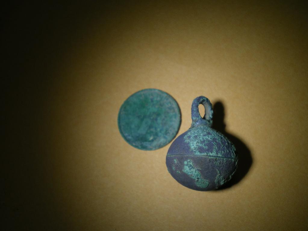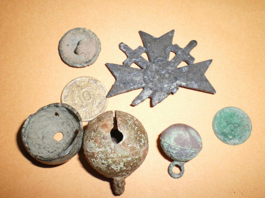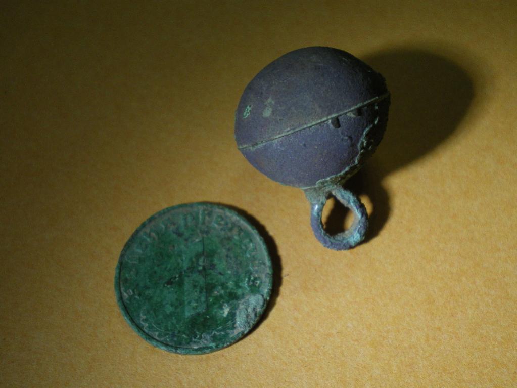 gestern kamen ein paar schöne Kleinigkeiten (endlich mal auch ein heiles Ziegenglöckchen)...kann jemand was zur Zeitstellung des "Kugelknopfs" sagen,und möglicherweise von welchem "Gewand" ?
