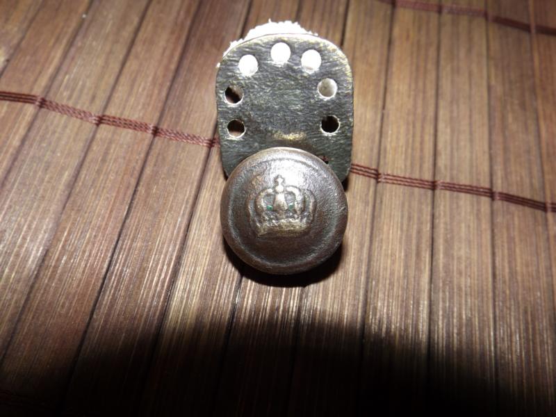Dann ist da noch dieser Knopf mit Lochplätchen auf dem Knopf ist eine Krone.