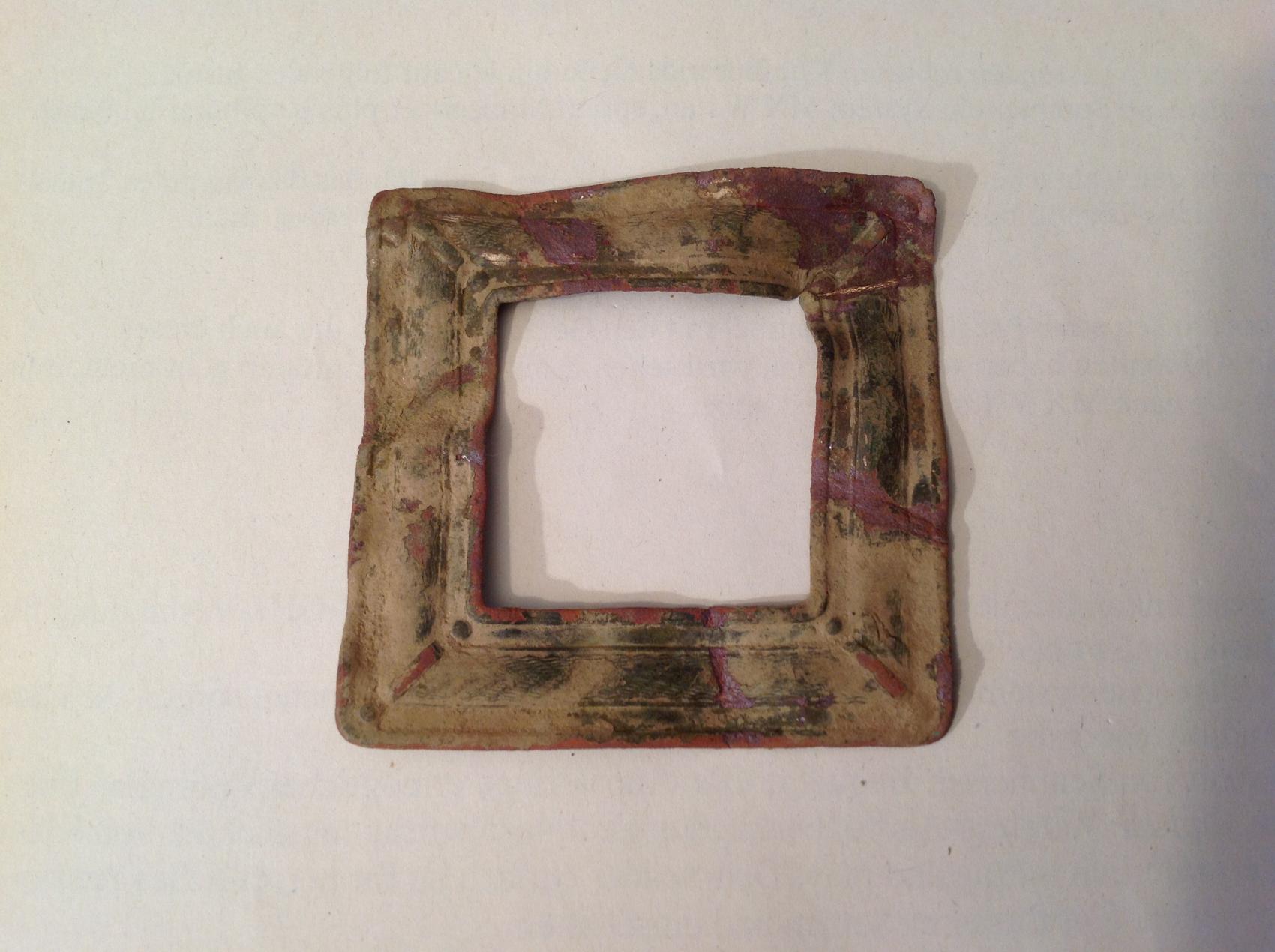 Kleiner Rahmen mit Verzierung aus Kupfer. 6,5 cm groß. Oder ist es doch etwas anderes? Hat jemand vielleicht auch so etwas gefunden?