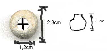 Form: Birnenförmig(2,8 cm), in der Mitte ein Loch (1,2 cm)