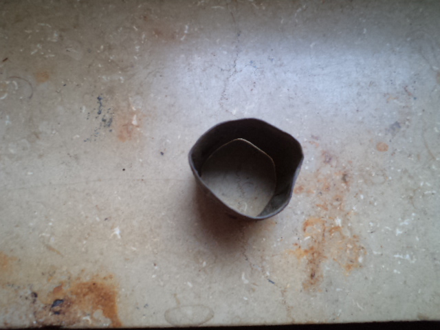 nach langer Pause wieder mal auf Tour gewesen und habe da diesen Ring gefunden.Durchmesser ist 2cm und Höhe ist 2,4cm und ist aus Kupfer rundum mit Muster.