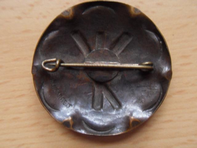 Was steht unten links auf der Rückseite des Abzeichens,der Hersteller?