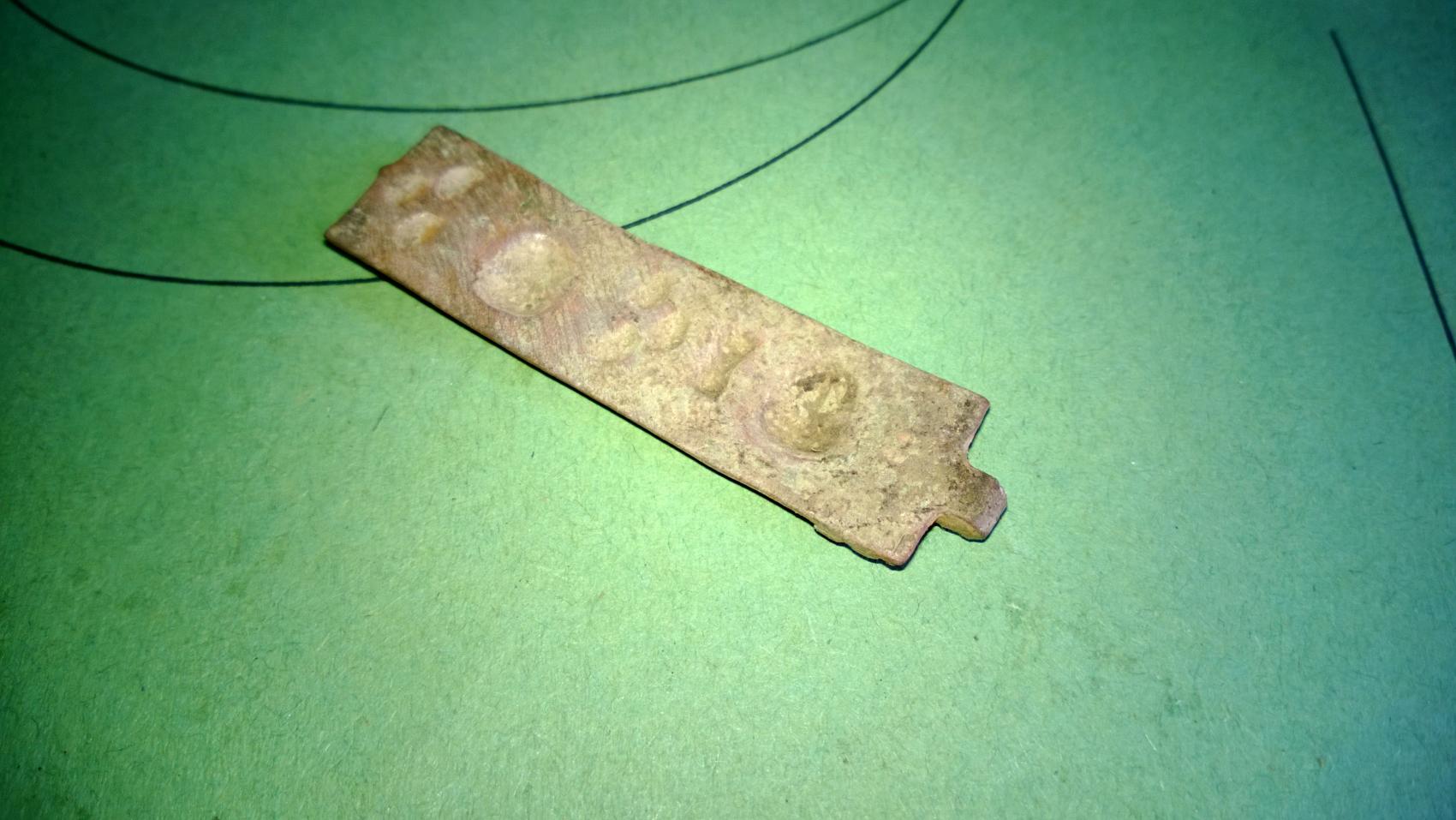 Ich habe mal 2 Sachen zu bestimmen, Bild 1 und 2 ist ein Bodenfund von letzter Woche ist entweder Bronze oder Kupfer sieht für mich sehr alt aus. evtl Stück von Armband. Länge ist 56 mm ( war aber mal länger) und 16 mm breit. Materialstärke ca 0,5 mm.