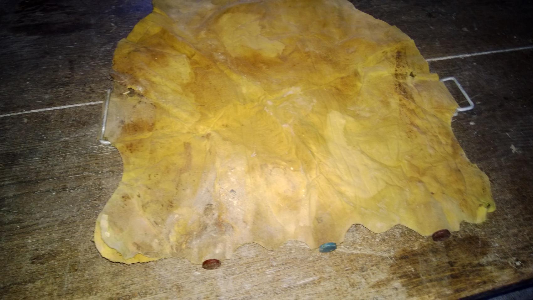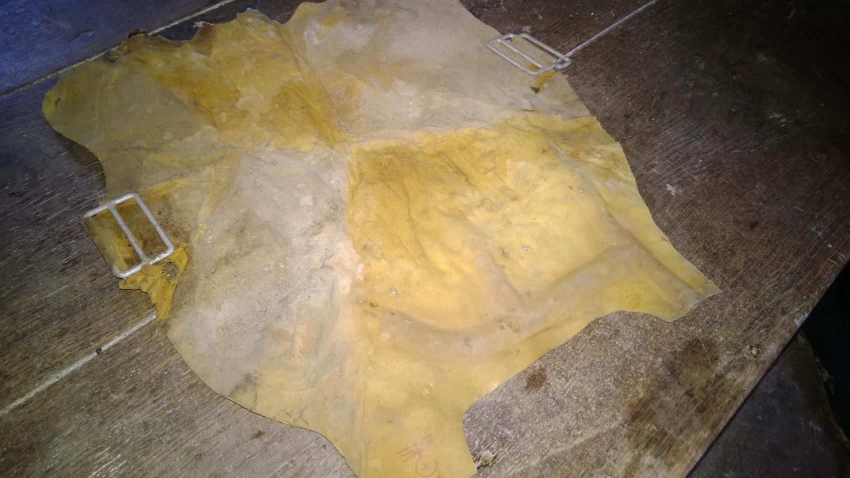 Bild 3 und 4 ist ebenfalls ein Bodenfund (ein Dachbodenfund) stammt scheinbar aus dem 2 WK. 47 x47 cm. es sind oben drei Stöpsel dran. Habe keinen Plan was das ist. Erinnert mich an ne Art Wärmflasche oder so.
