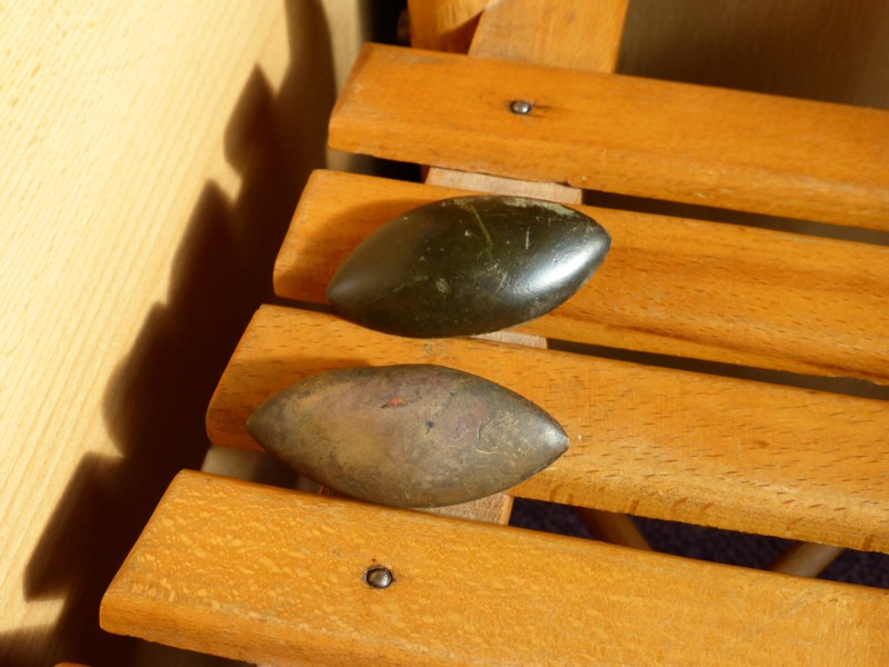 Eins habe ich schon lange in einer Kiste und war ein Detektorfund. Das andere Teil hab ich letztens bei Grabungsarbeiten (Kabelgraben auf priv.Hof) erspäht.