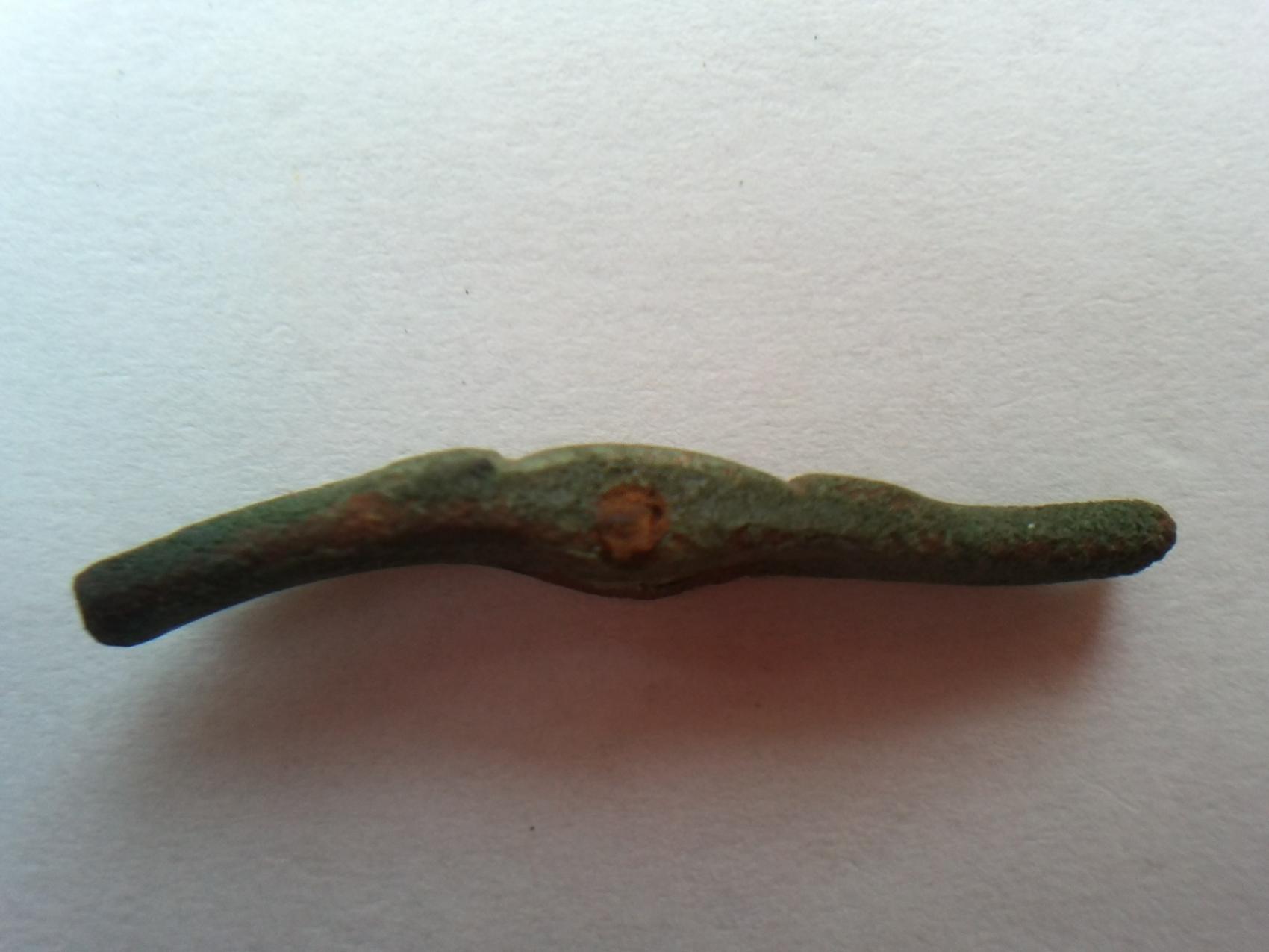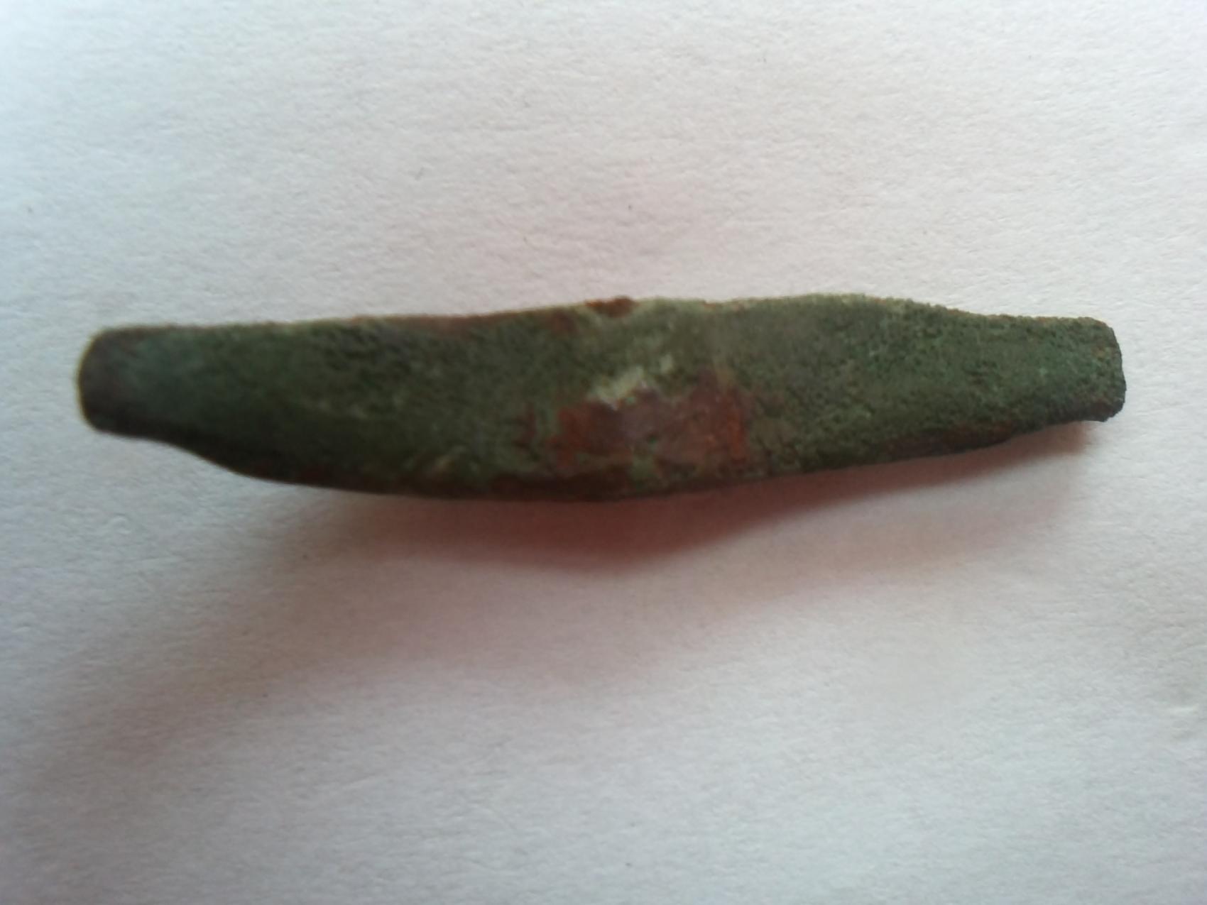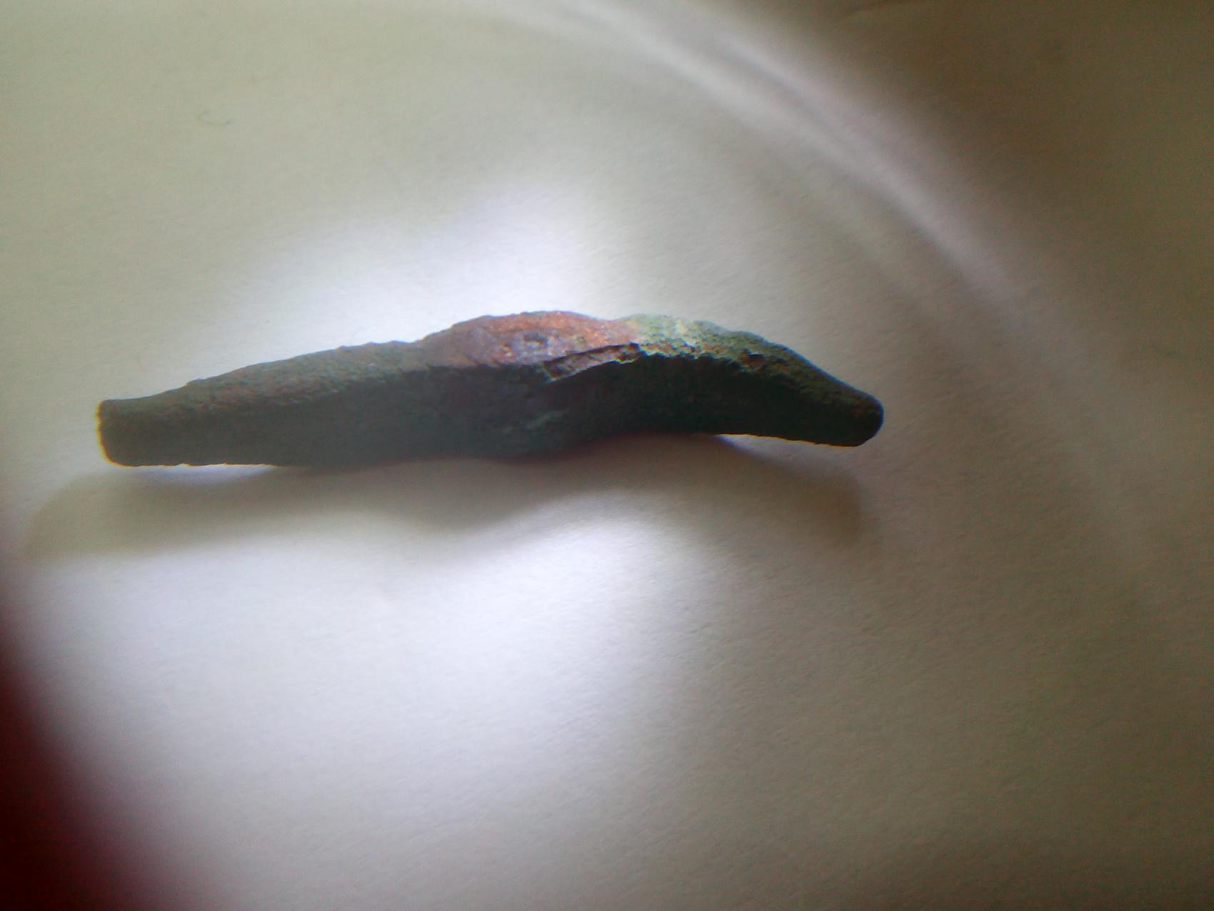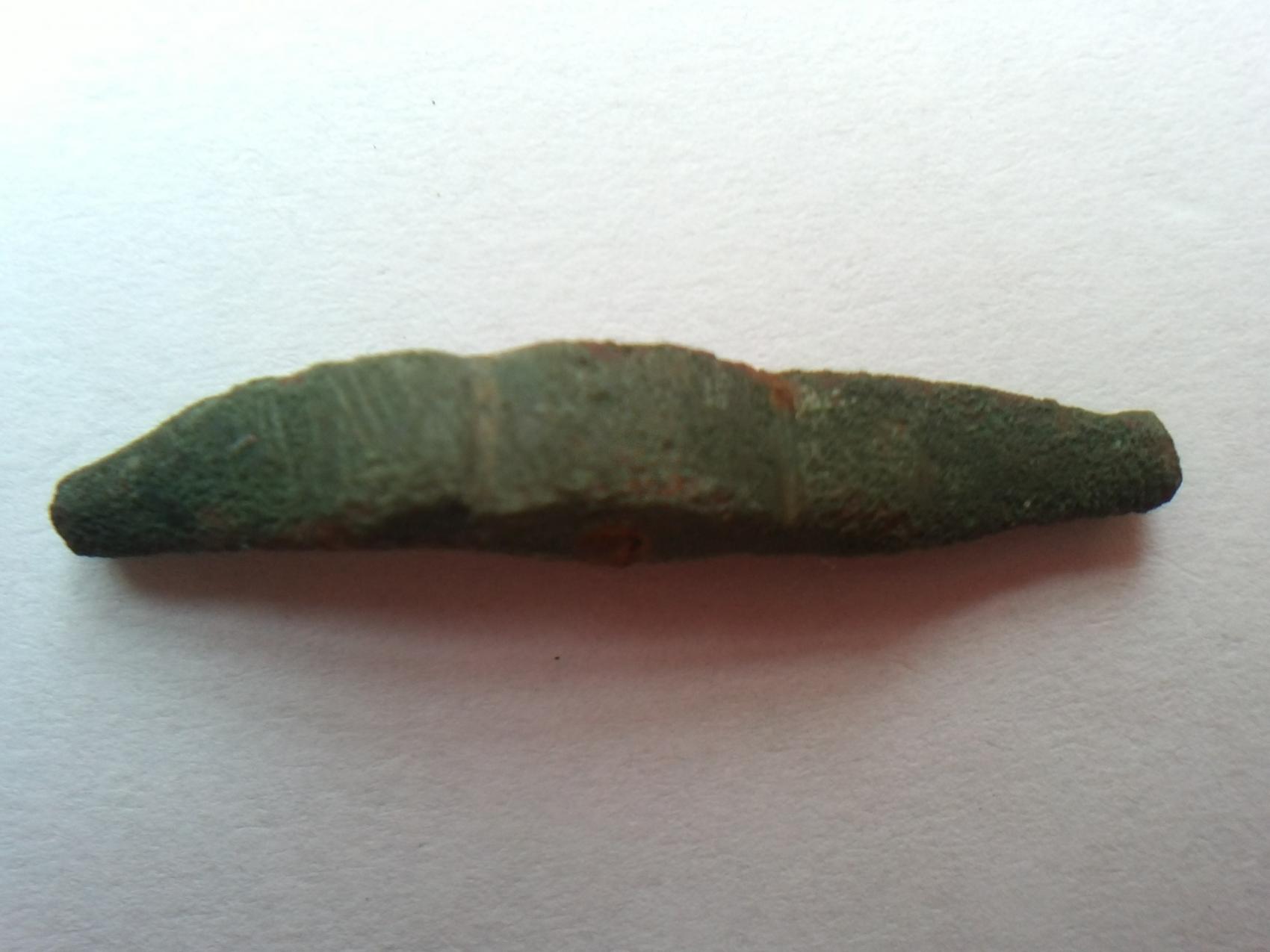 Hi Leute hab hier so ein Ding gefunden...meine Vermutung: Fiebelbruch...Da ich noch nie so etwas gefunden hab, brauch ich Hilfe... Länge genau 3cm Breite 4-5mm. Fundtiefe: 10cm aufm Acker. Beifunde: MA bis viel Neuzeitliches...ance