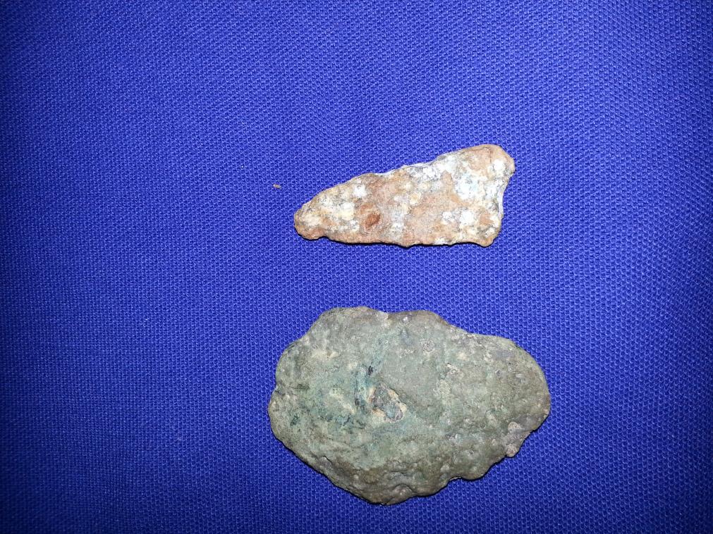 Das Grüne außen rum scheint eine Art Kupferplatierung zu sein. Das darunter ist aber kein Kupfer, könnte irgend ein hartes, massives Metall sein, denke ich.