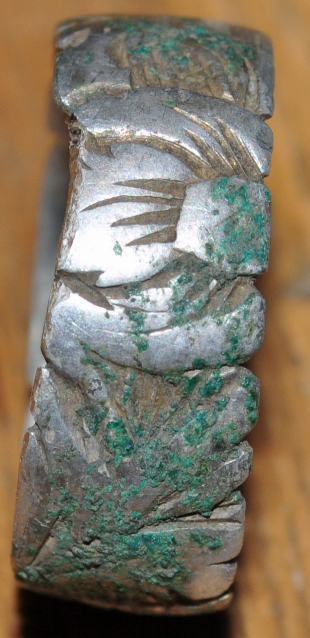 Denke mal der Ring wird aus sehr schlechtem Silber sein,es ist Grünspan auf dem Ring .