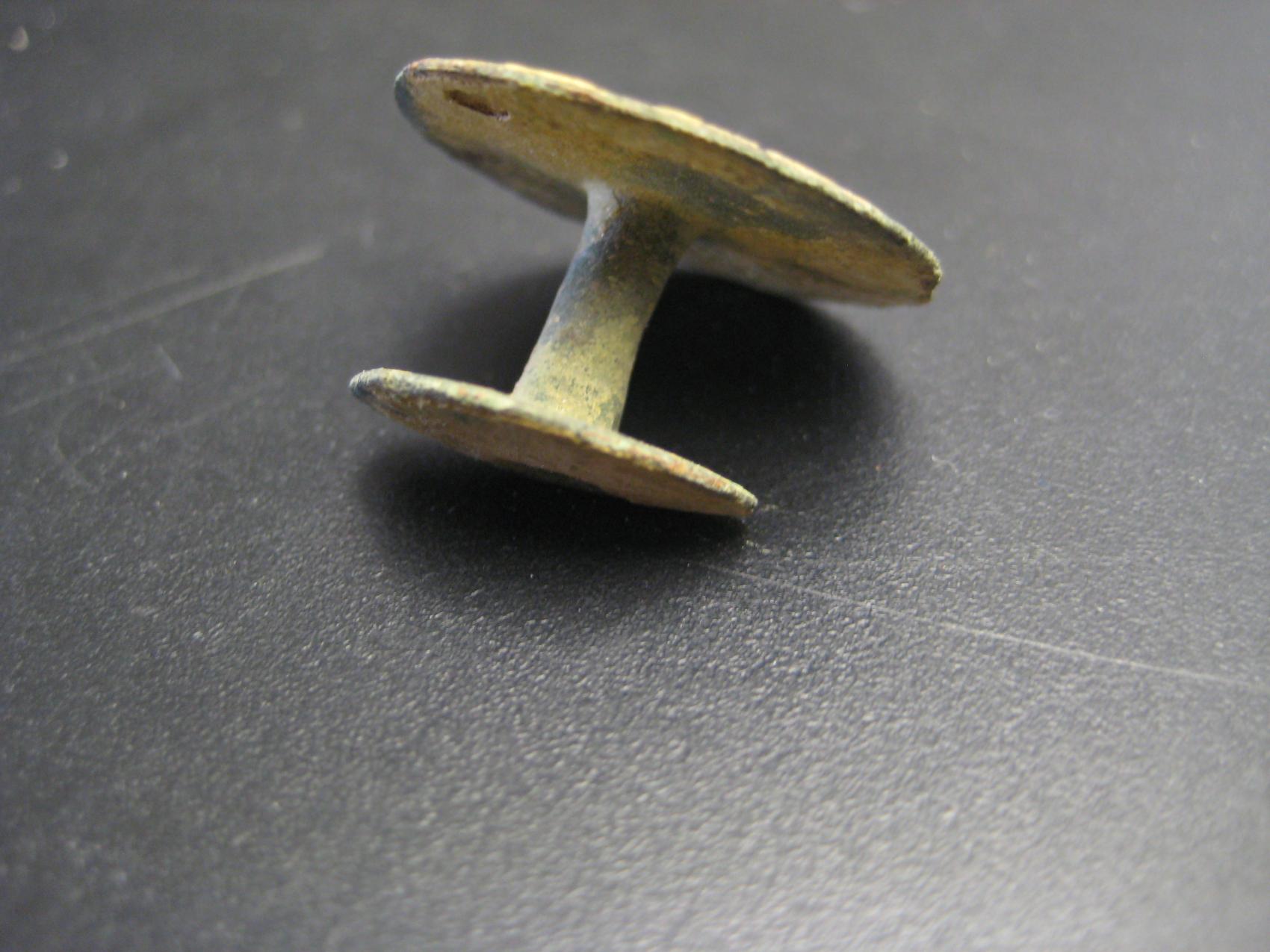 Hab sowas irgendwo mal als Doppelknopf oder Nietknopf gesehen, weiß aber leider nicht´s mehr über Verwendung und Alter.