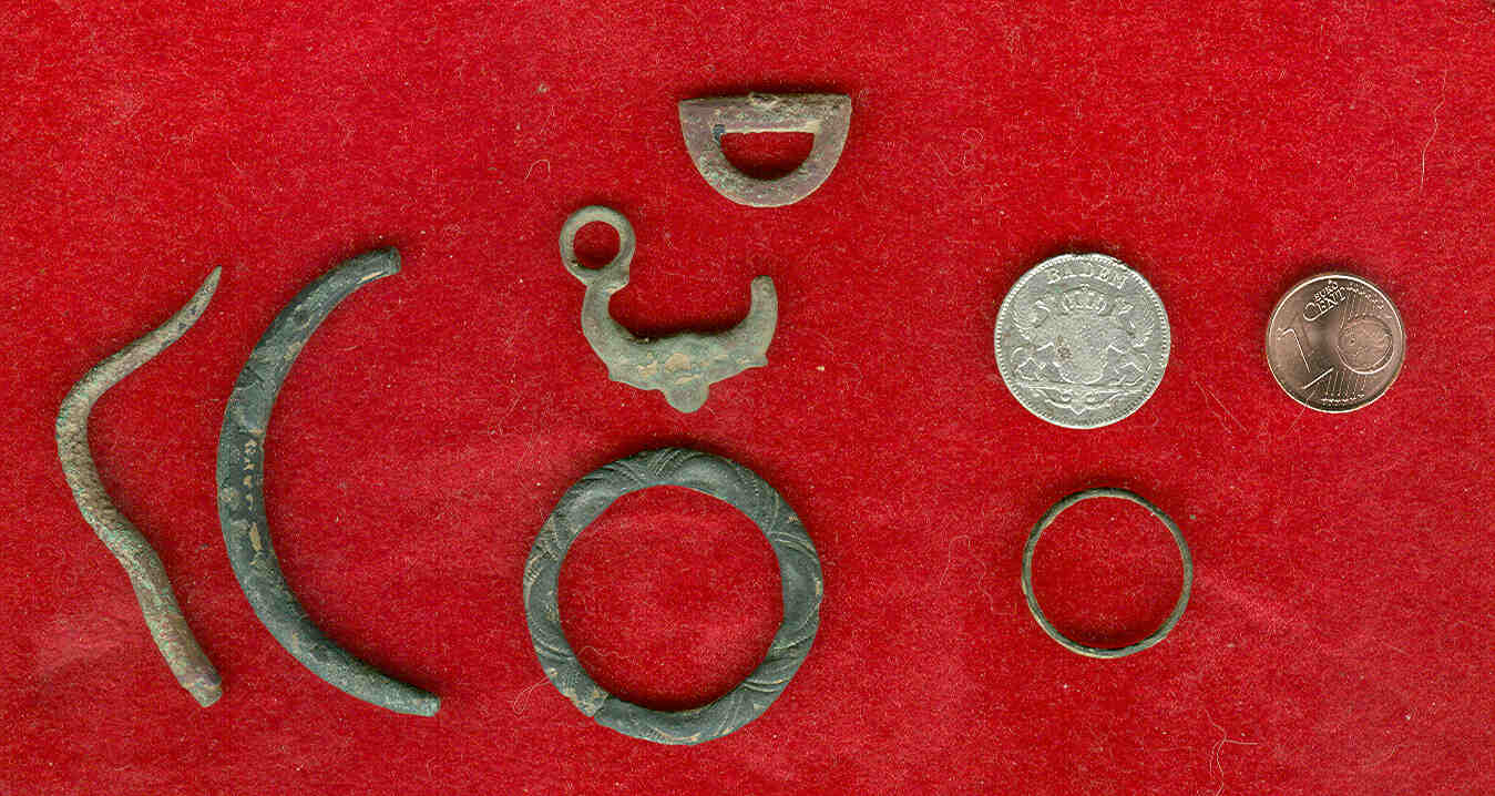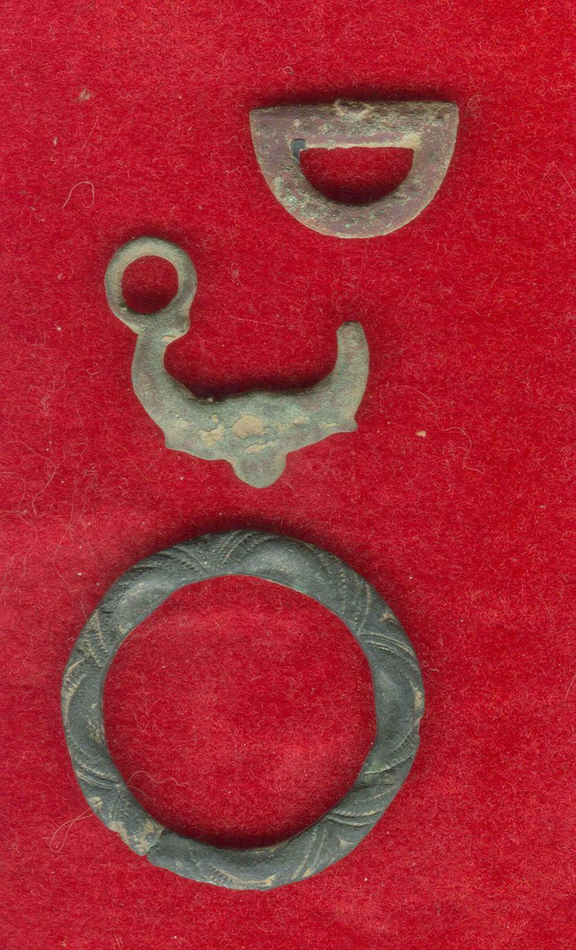 Oben eine kleine, sehr massive Schnalle, die eine (auf dem Scan kaum sichtbare) Punktverzierung aufweist.