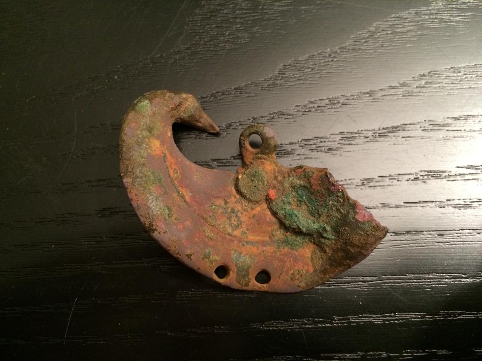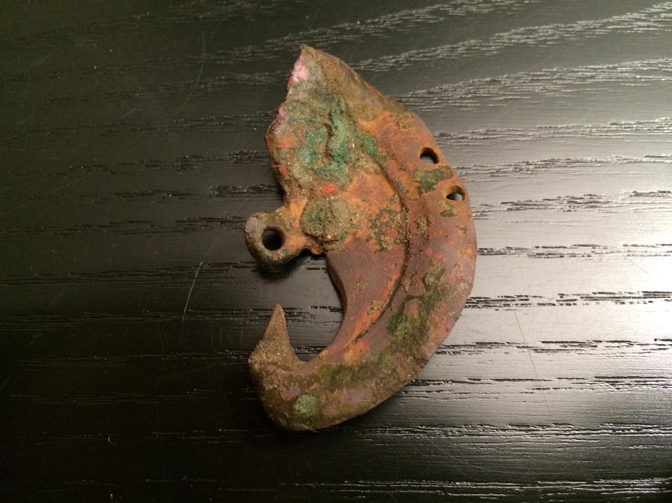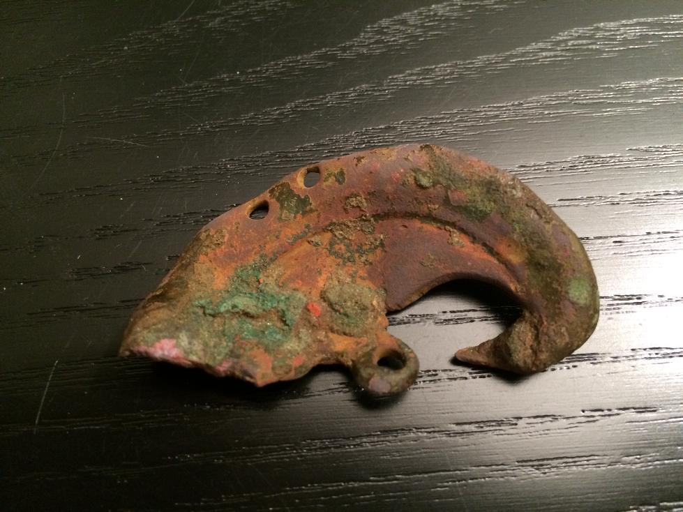 Wollte euch mal dieses halbmondförmige Ding zeigen. Ich glaube es ist eine Art Pferdeschmuck gewesen. Kann jemand mehr dazu sagen? Maße: 5,5cm x 3,5cm
