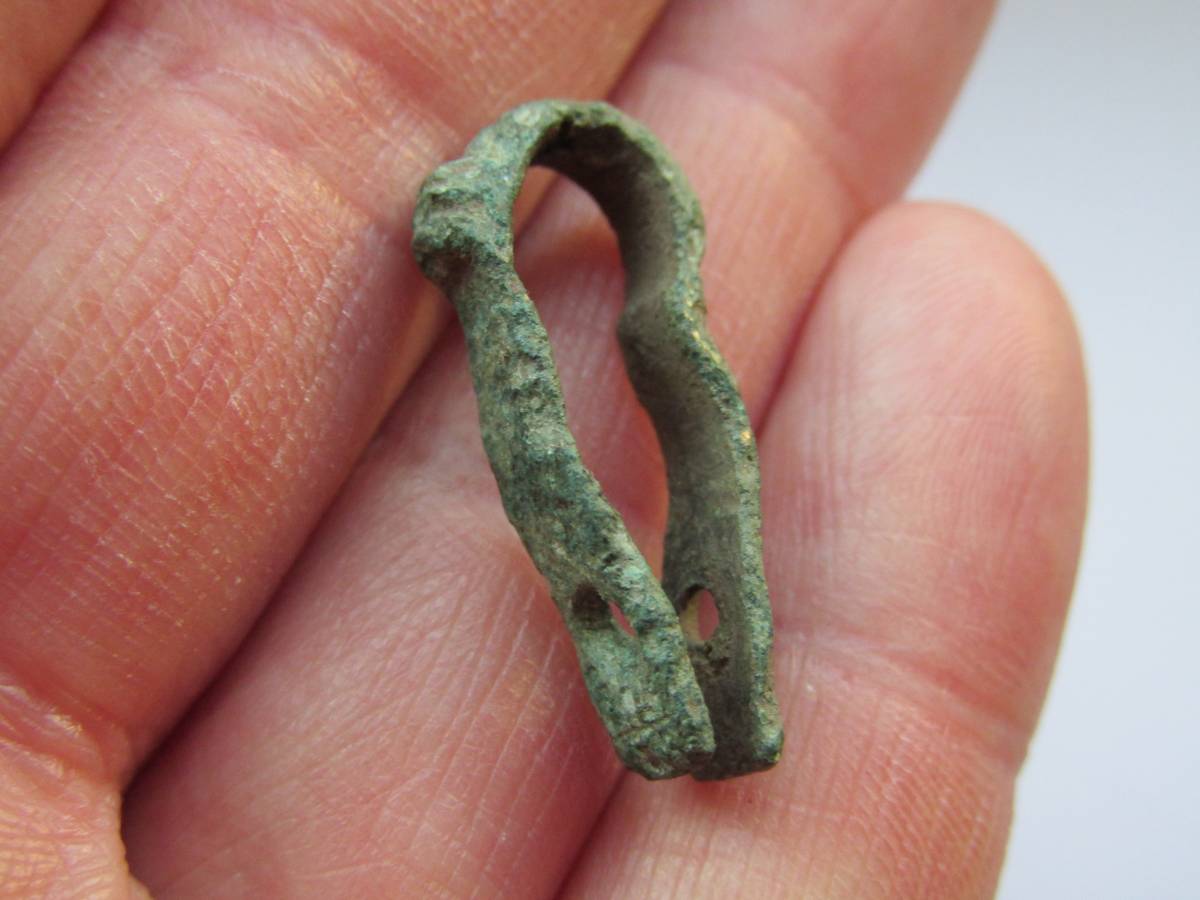 Hab inzwischen die Lösung: Ösenbeschlag. Bei der Größe für einen Waffen- oder Leibgurt. Ältere römische Kaiserzeit.