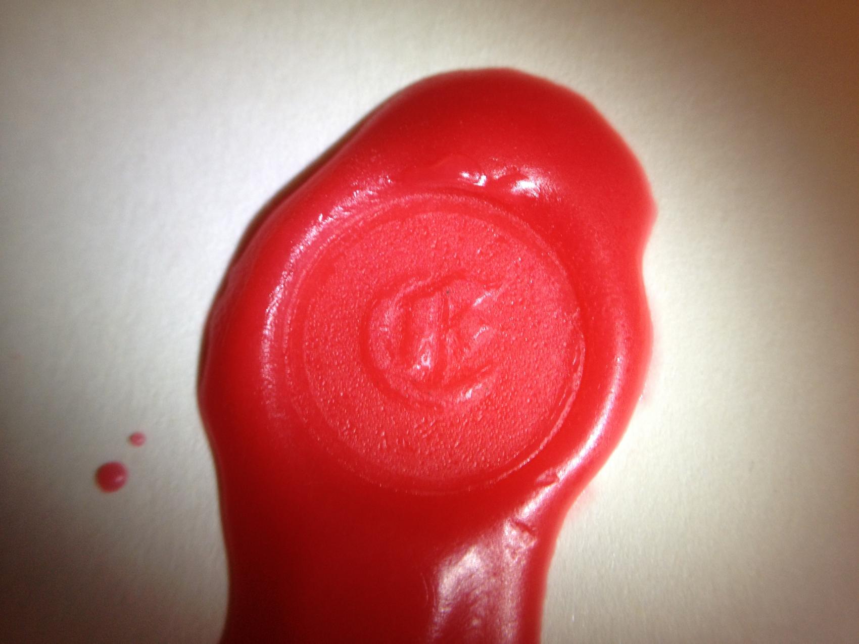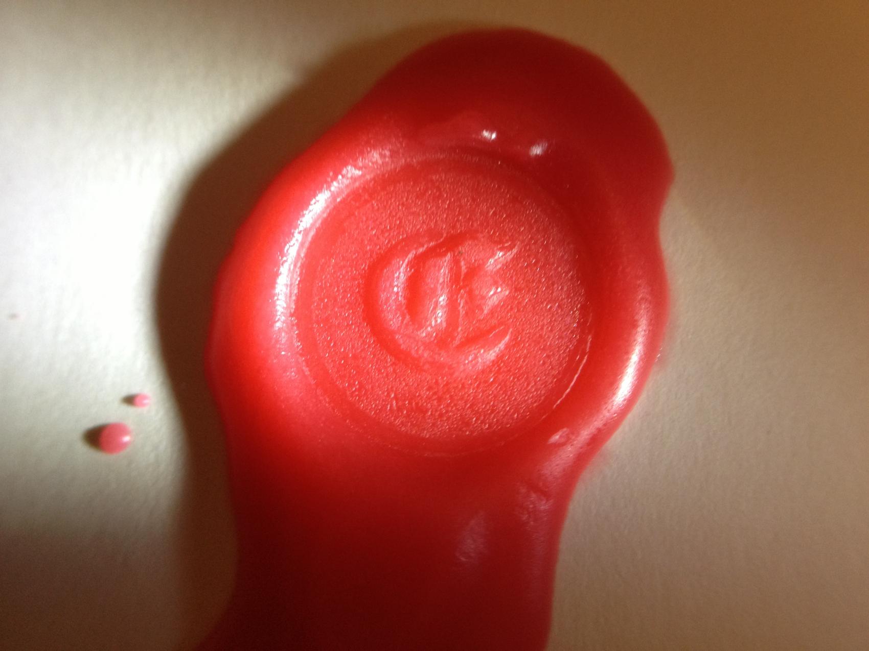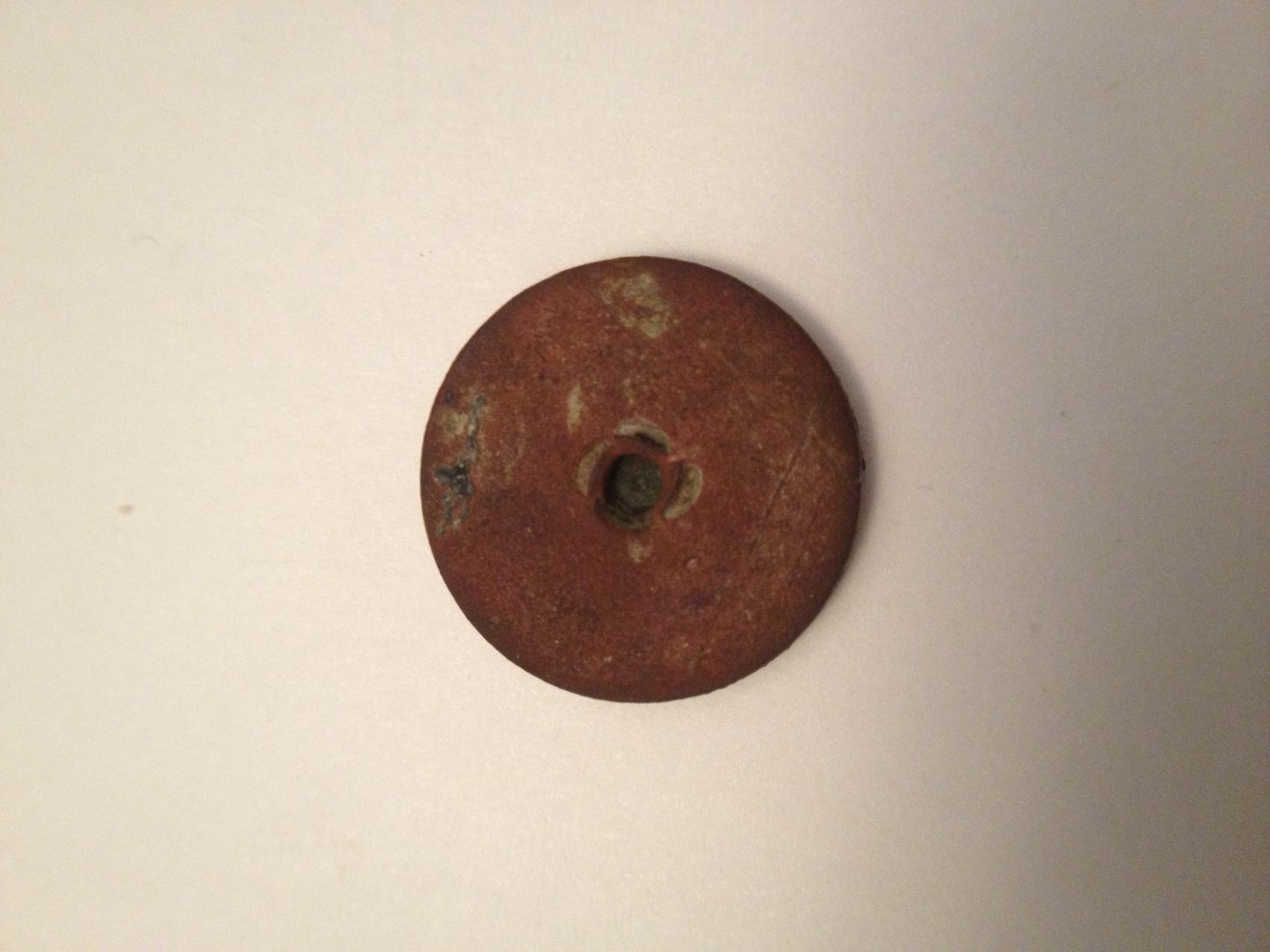 Ich erkenne darauf einen Sichelmond mit einem F darin. Ich habe mal versucht einen Abdruck zu machen aber das funktioniert, bekannter Weise, mit einer Kerze nicht optimal. Auf der Rückseite kann man noch die Stelle erkennen, an der eine Öse oder ähnliches war.