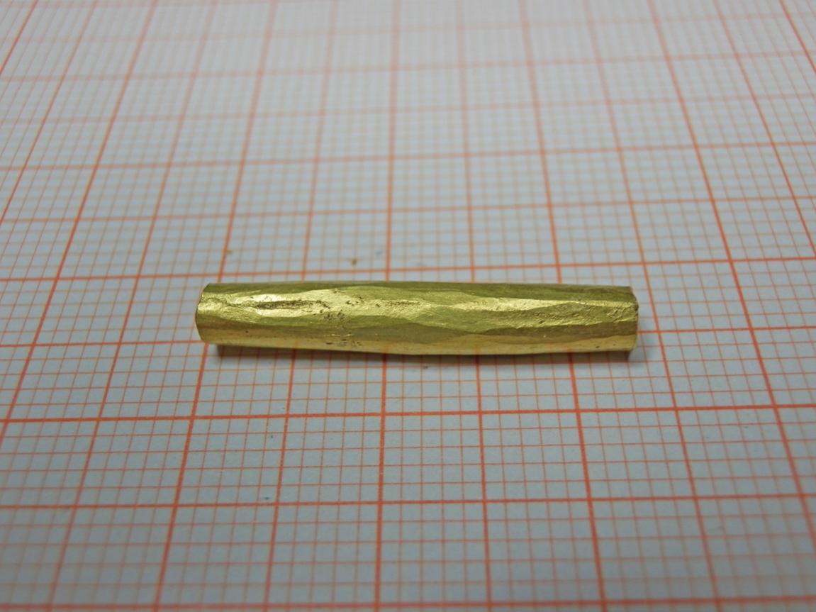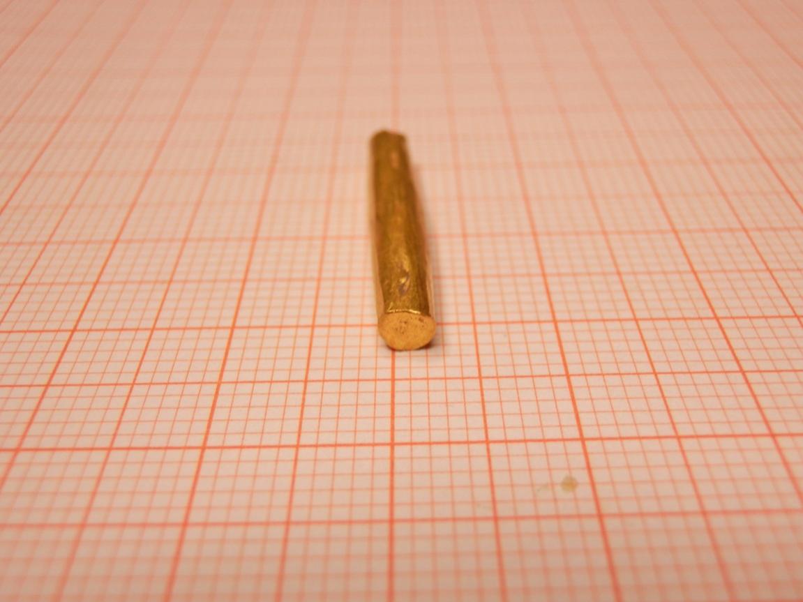 Der „Stift“ ist 2.3 cm lang und 4 mm stark. Die beiden Enden sind nicht abgeschnitten oder gebrochen, sonder gegossen.
