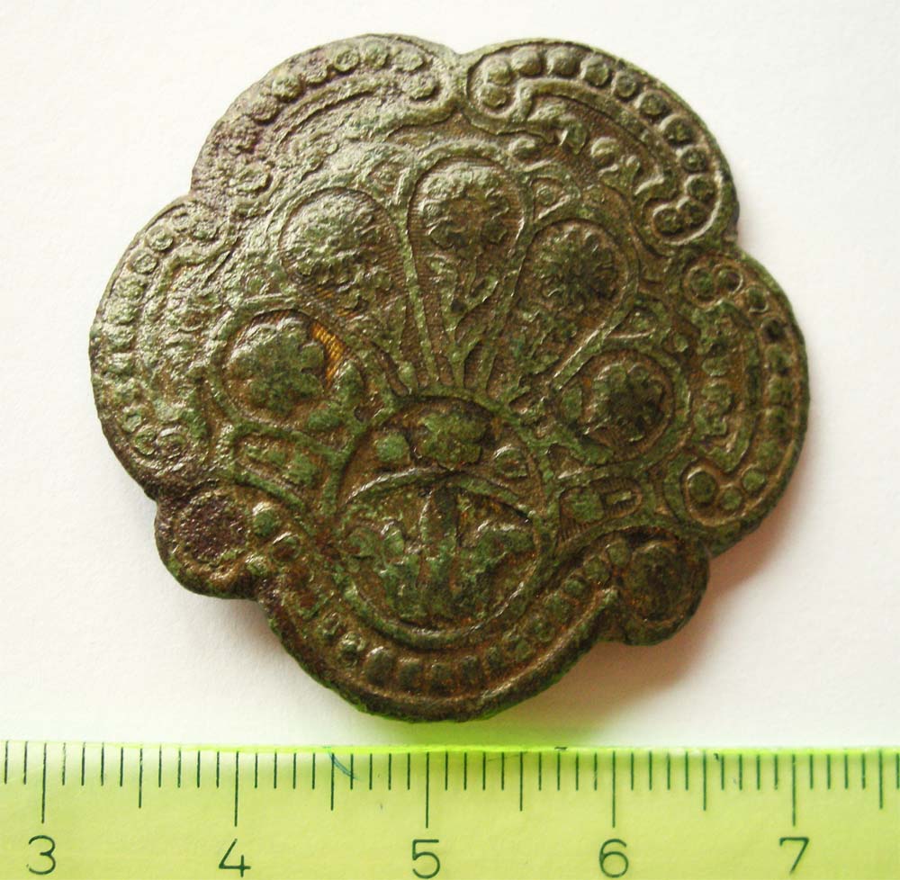Form zuerst den Verdacht Pilgerabzeichen Jakobsweg. Aber Deckel von einer kleinen Dose
