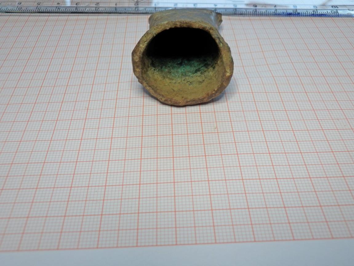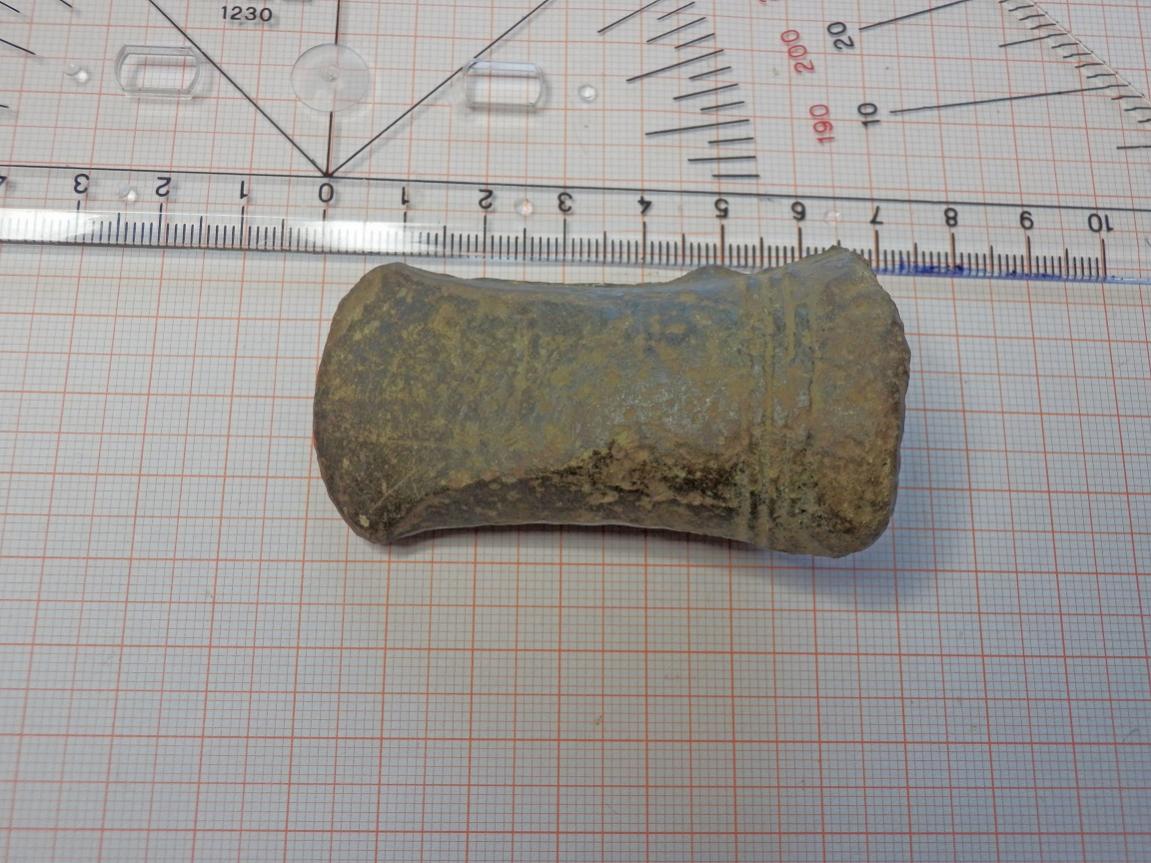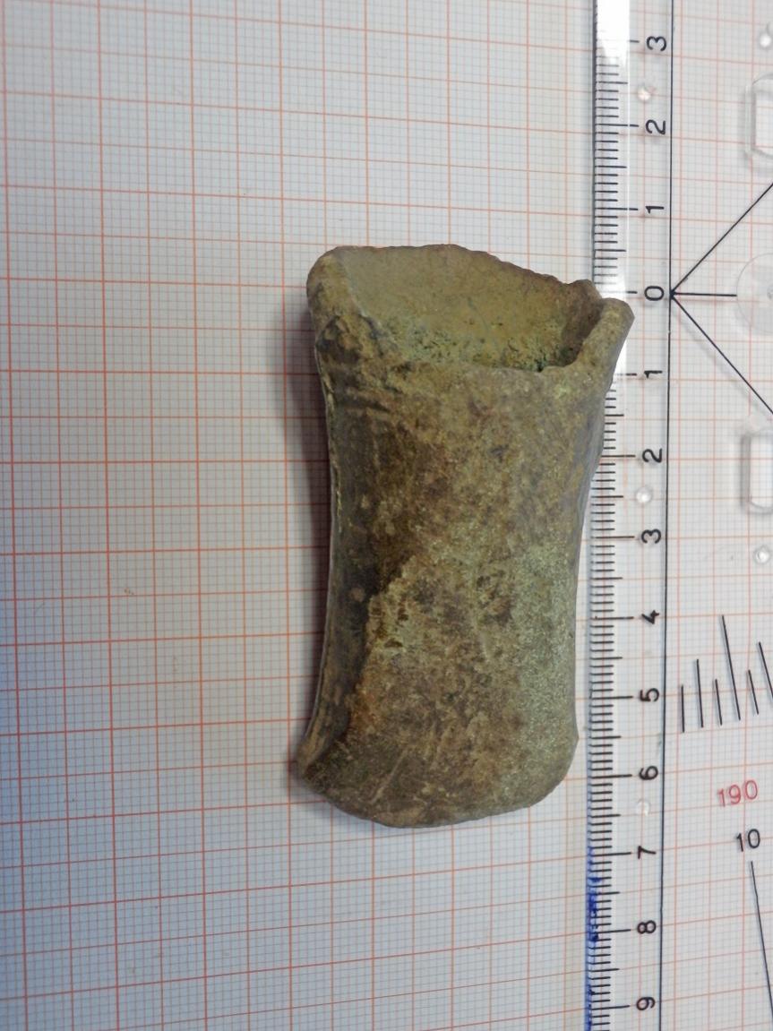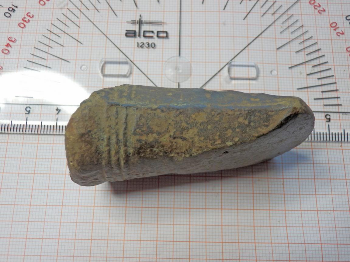 gestern fand ich dieses „Beil“. Maße siehe Foto, 82 G schwer und nicht magnetisch. Im Hohlraum ist deutlich grüne Patina zu erkennen. Von der Form her würde ich halt sagen, dass es sich um ein kleines Beil handelt, was mich aber stutzig macht ist die Tatsache, dass es hohl ist.