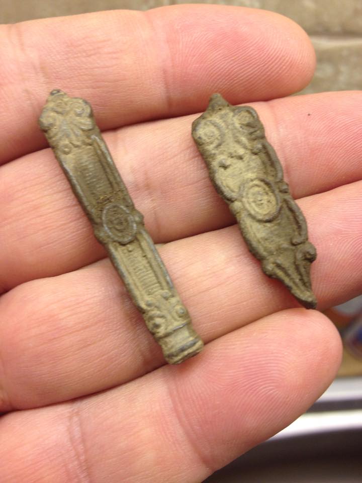 Dann wüßte ich gern ob jemand diese Zierteile erkennt, ich denke es sind keine Buchschließen