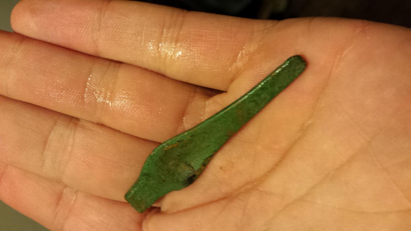 Hier ein paar neue mit vernünftigen Größenangaben. Ich vermute Schwertklammer neuzeitlich ~18. Jahrhundert und das andere Teil könnte vom Pferdegeschirr oder Gürtel sein und ebenfalls neuzeitlich?