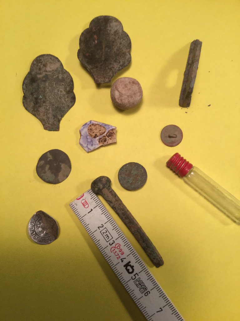 Bild 9+10 vermute ich eine Münze--kann aber nichts erkennen sondern nur erfühlen--Erhebungen und Vertiefungen