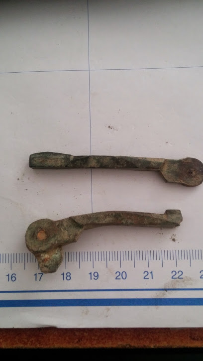 Hier noch was aus der Ufokiste. Was mich verwundert, die Teile sind recht grob aus einem bronzeähnlichen Material "geschmiedet" aber enthalten an der Stirnseite eine saubere Bohrung, die schon recht feine Gerätschaften voraussetzt. Das sieht bald so aus, als ob das Grobgearbeitete bewusst einen rustikalen Eindruck erzeugen soll. Hat jemand eine Idee?