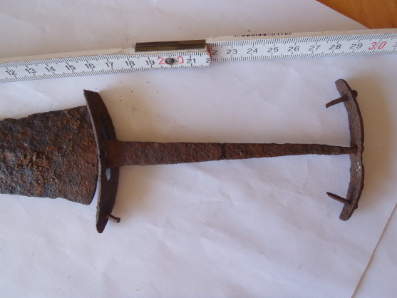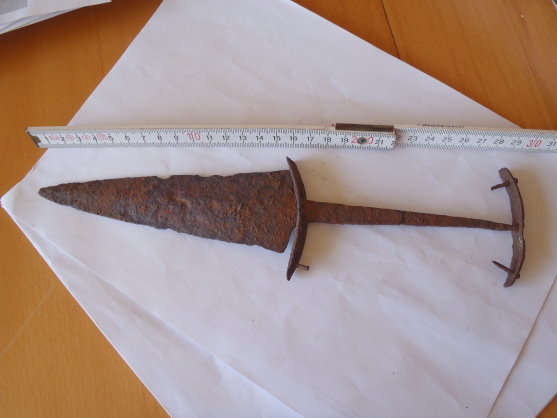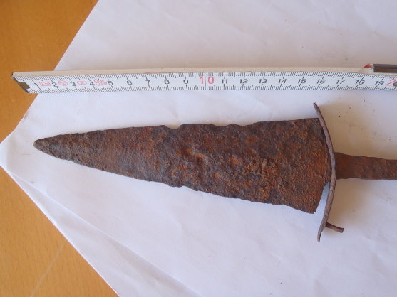 Der Dolch sieht durch den zweiseitigen Schliff eher nach dem Mörderdolch von Cäsar als nach einem bayerischen Hirschfänger aus. Habt ihr schon mal was ähnliches gesehen und welche Zeitstellung könnte möglich sein?