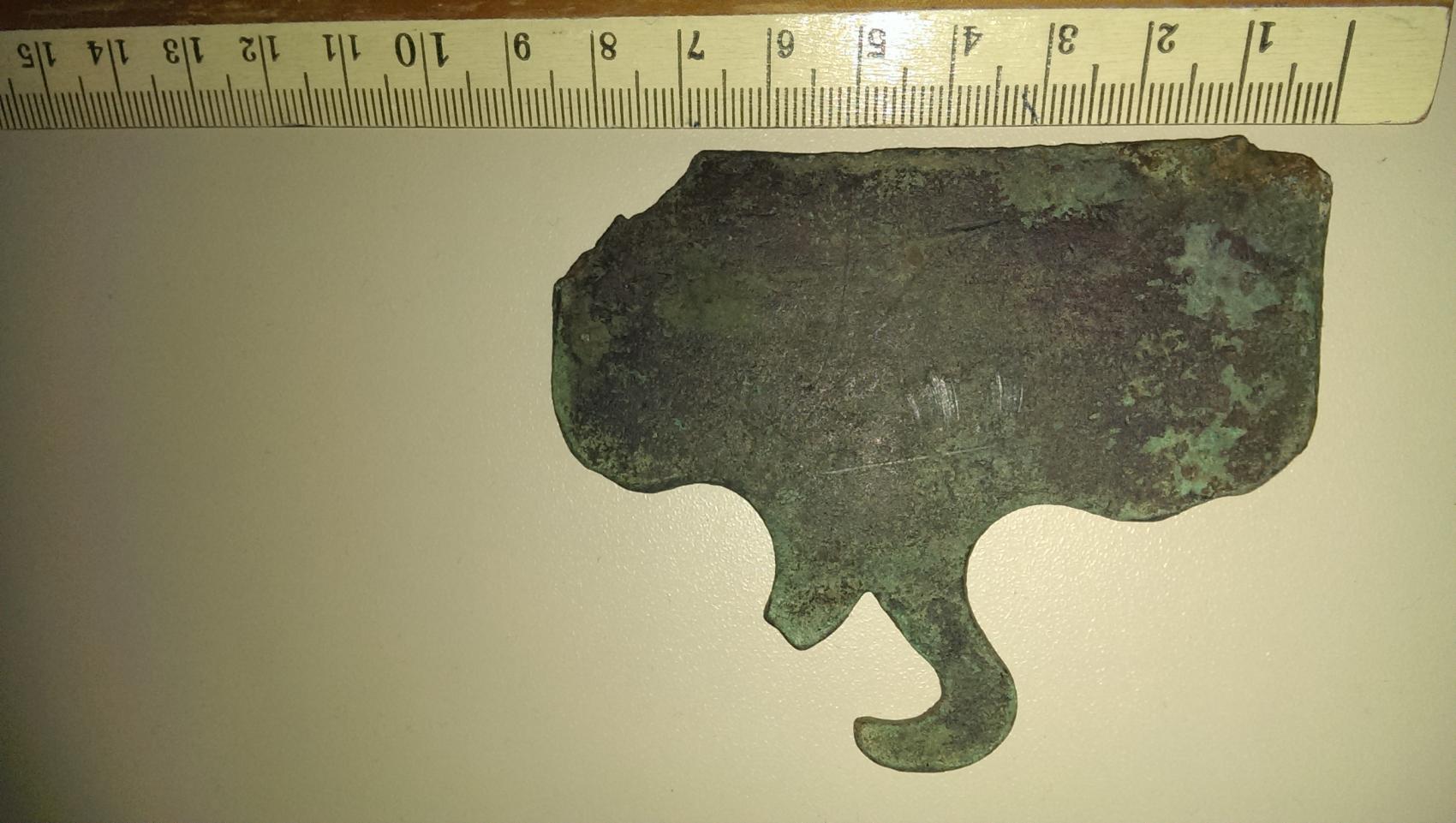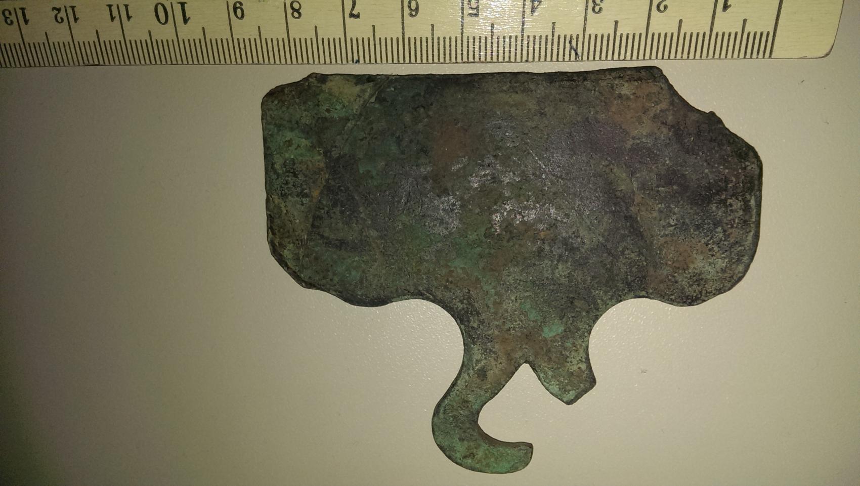 Der Haken scheint ganz zu sein, also nichts abgebrochen. Auf der anderen Seite des Hakens ist eine Bruchstelle zu sehen.