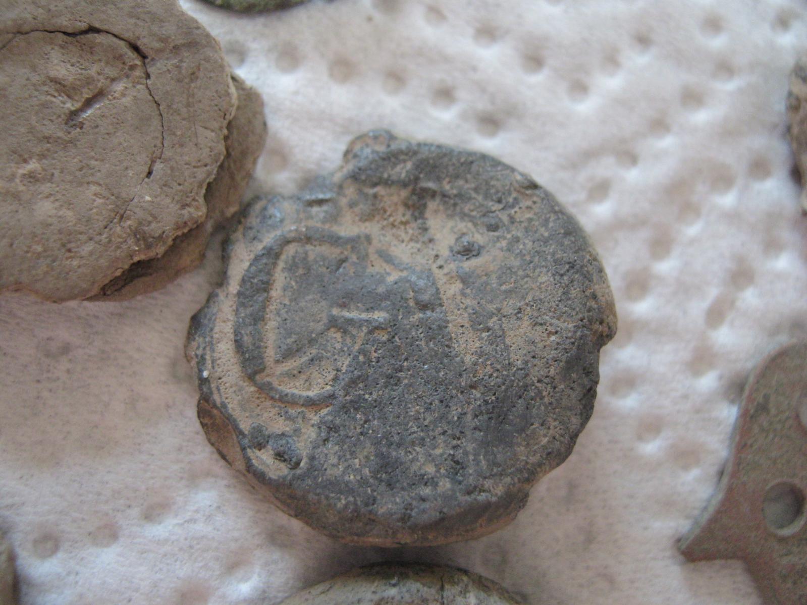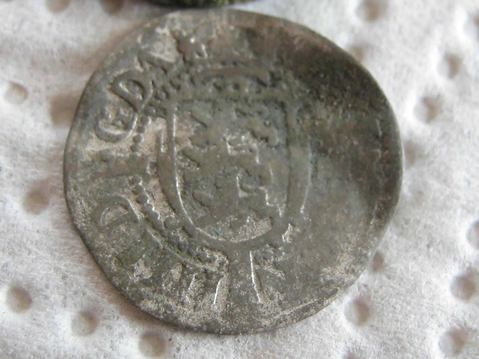 Bild 4 und 5 ein kleines silbernes, Skilling???