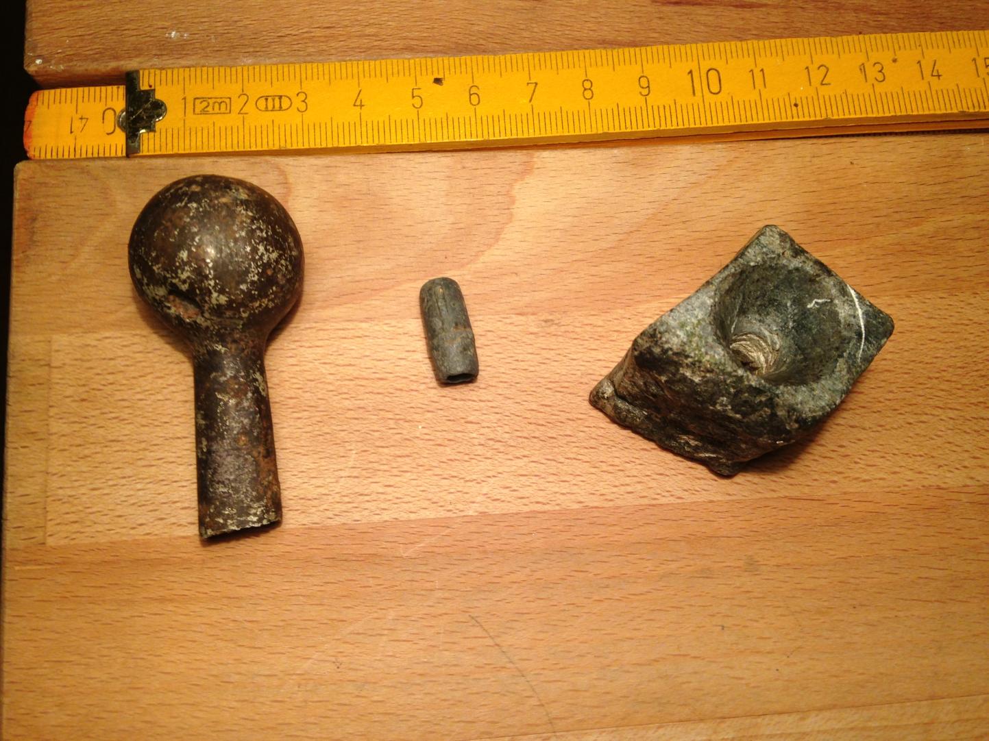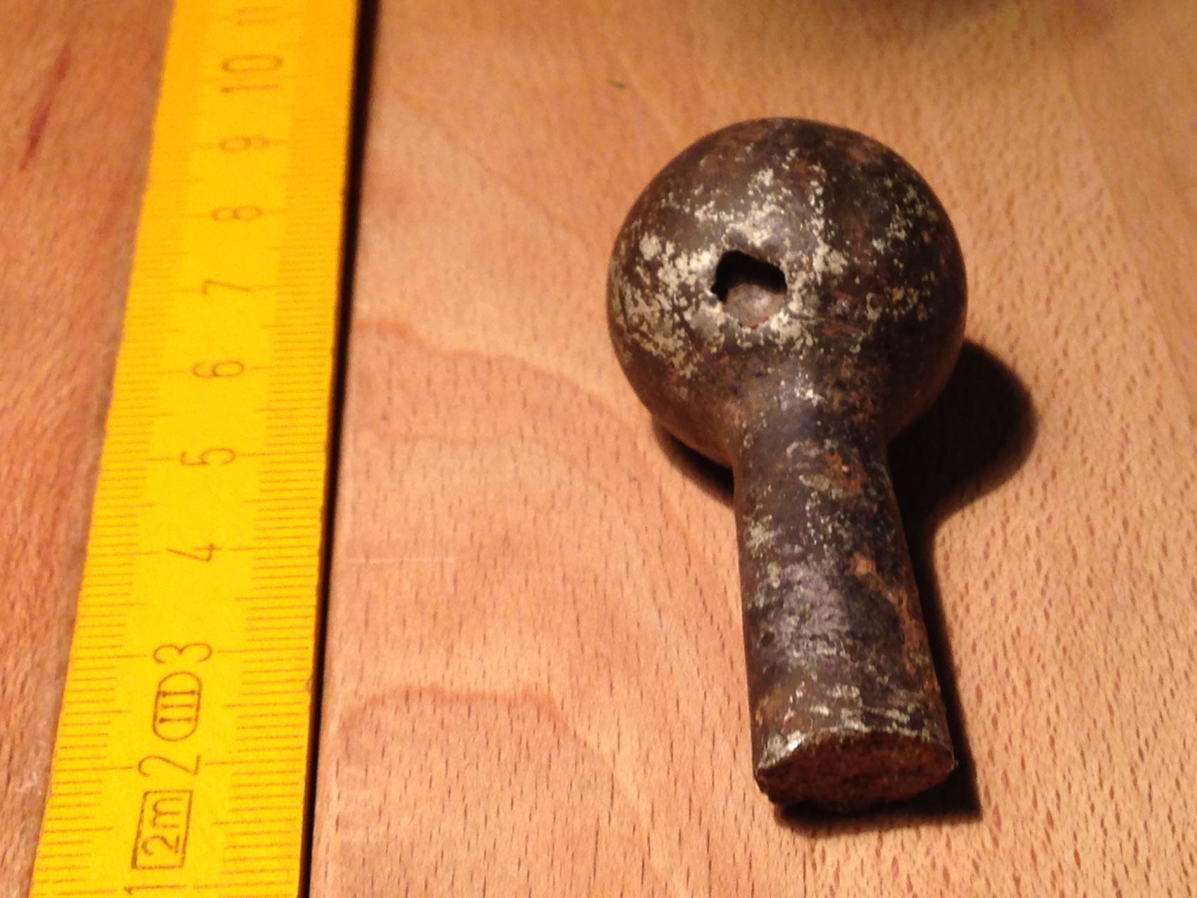 Nr 1 - kugelknauf, ziemlich leicht dafür garnicht mal so rund. die "stange" ist oval und in der kugel ist ein merkwürdiges kleines loch.