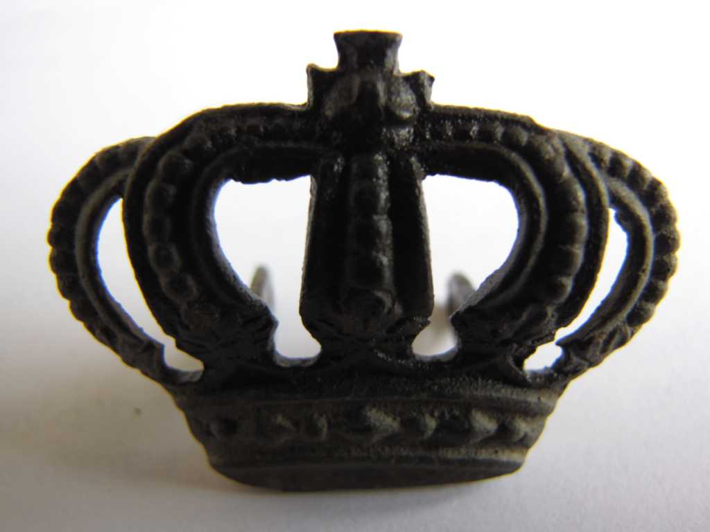 Die krone ist etwa 3cm breit und hat auf der Rückseite zwei Ösen.