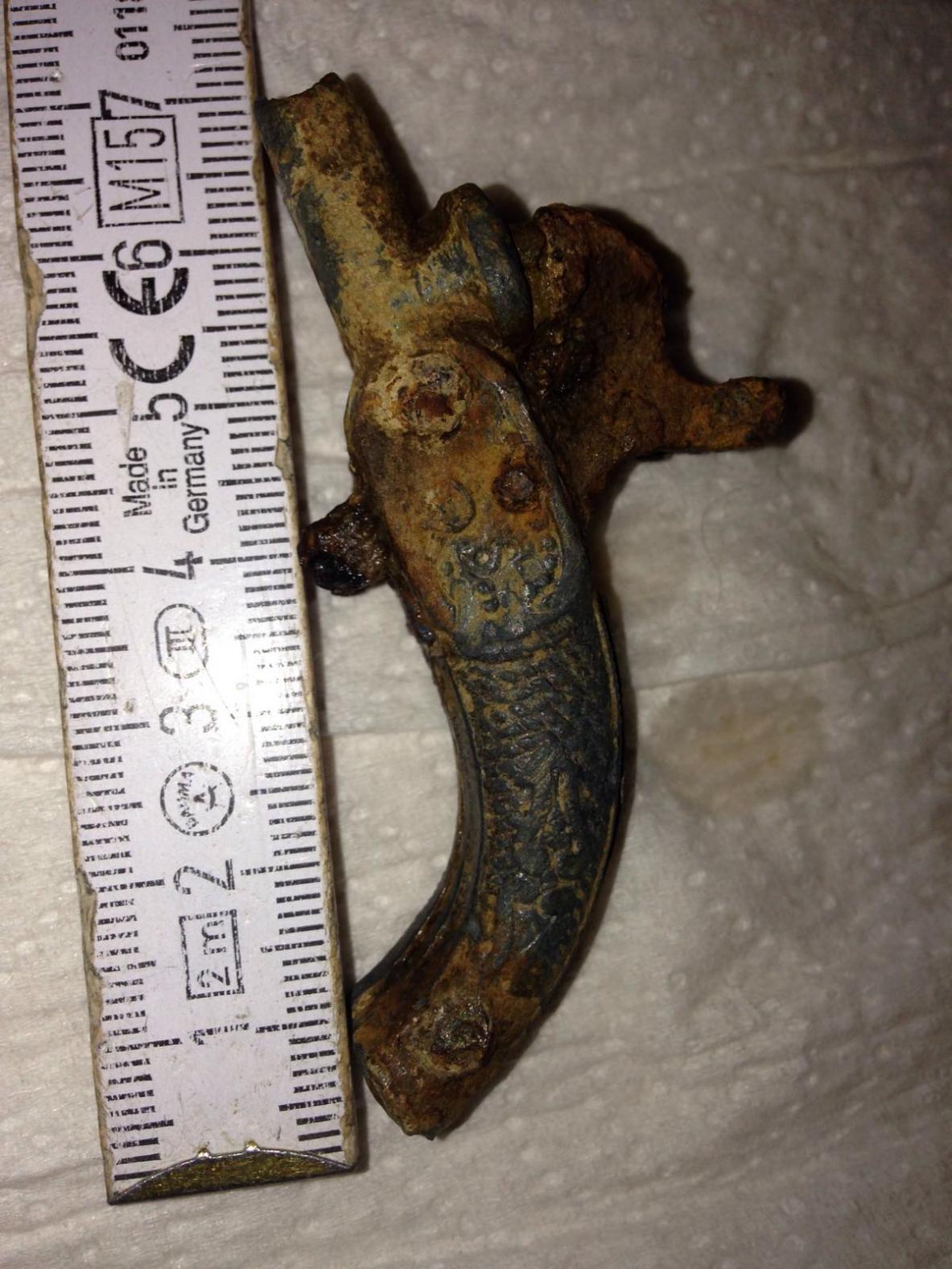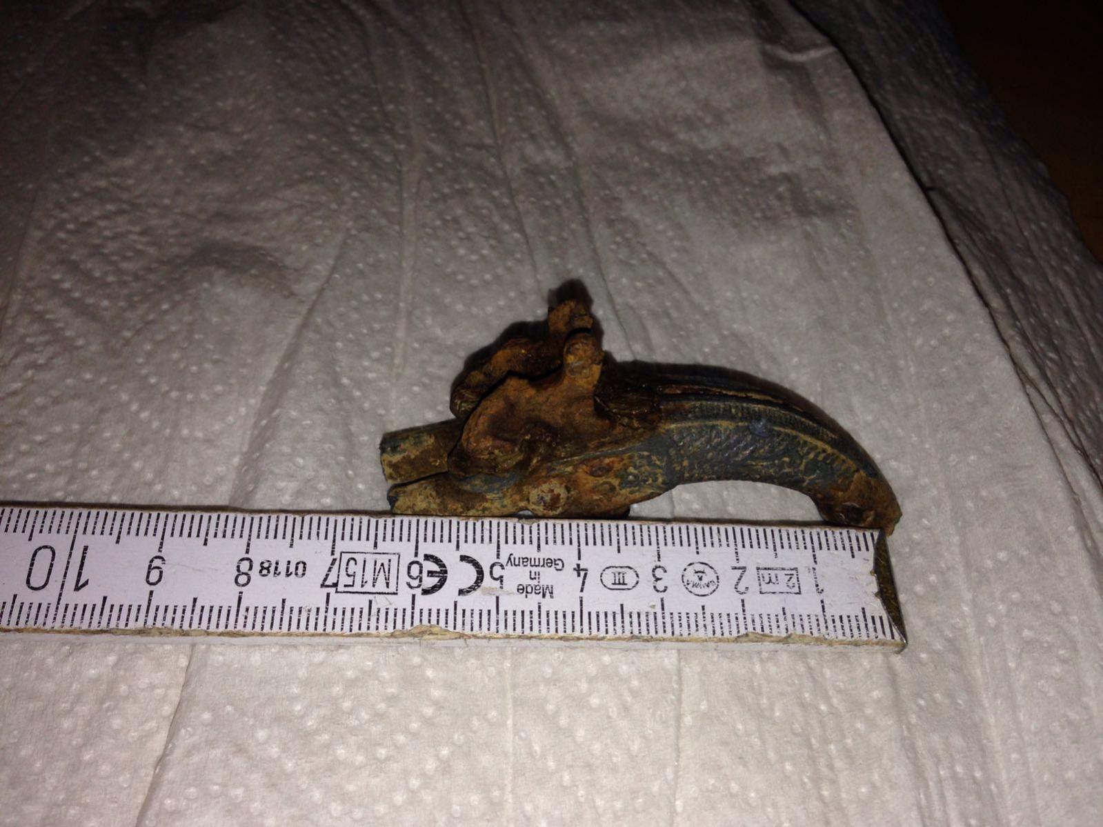 Oft findet man Reste von den Griffen auf den Acker ( Bruchstücke ) sind Spielzeug Pistolen oft auch kleine Kanonen sowie Pferd mit Reiter daneben.