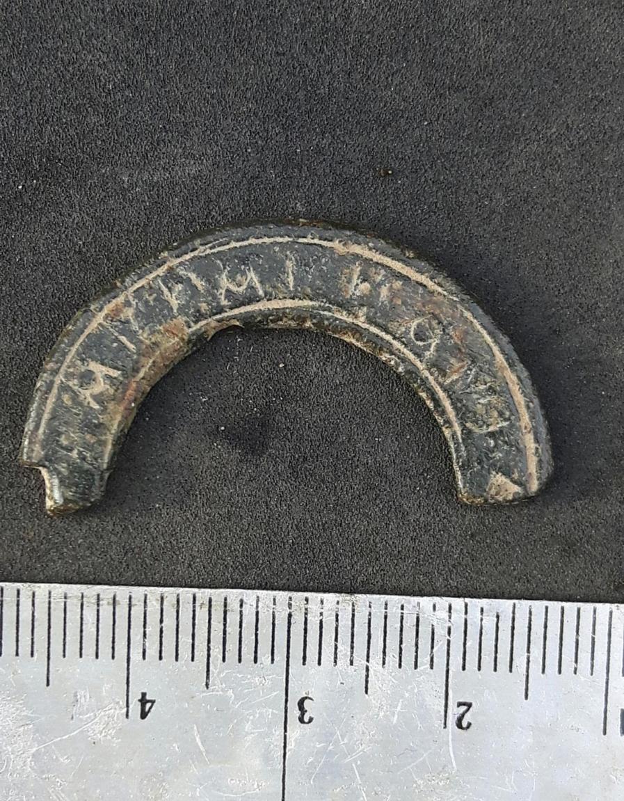 Bei den letzten Runden kam auch das Teil ans Tageslicht und ich vermute mal das es sich hierbei um ein Fibelrest handelt , kann nur die Zeichen nicht entziffern aber evtl seht ihr ja mehr