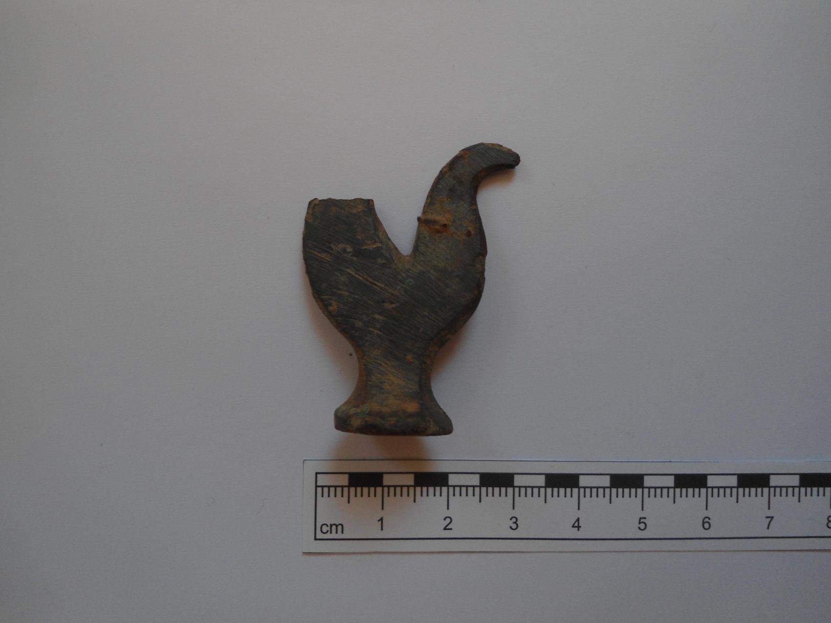 In "Die hoch- und spätmittelalterlichen Buntmetallfunde nördlich der Alpen" von S. Krabath wird ein sehr ähnliches Stück als zoomorphe Plastik angesprochen.