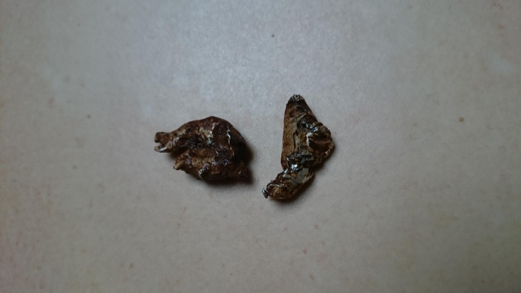 Und mal nebenbei (Anfängerfrage), was sind denn diese beiden verformten silbernen Klumpen, finde sowas immer wieder? (letzte Foto 0110)