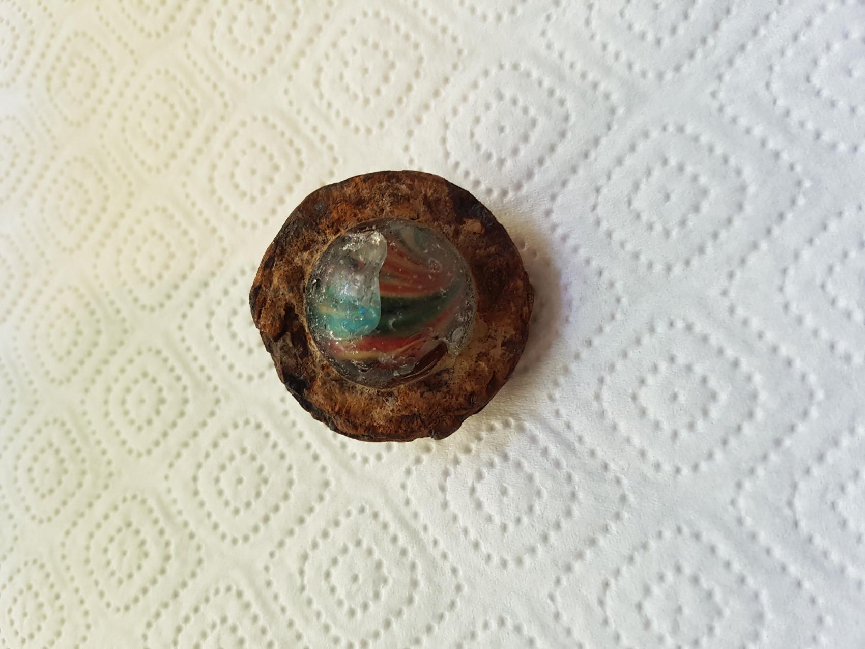 Diese Glasmurmeln kenne ich noch aus Kindertagen nur eben nicht eingefasst in einen Metallring!
