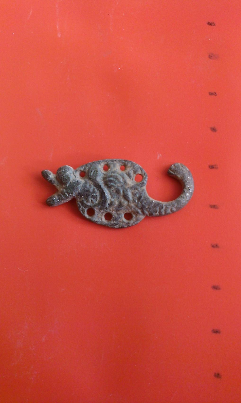 Das ist ein Miederhaken mit dem biblischen Motiv "Noah und der Wal".