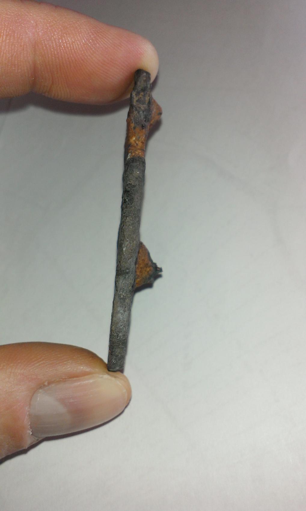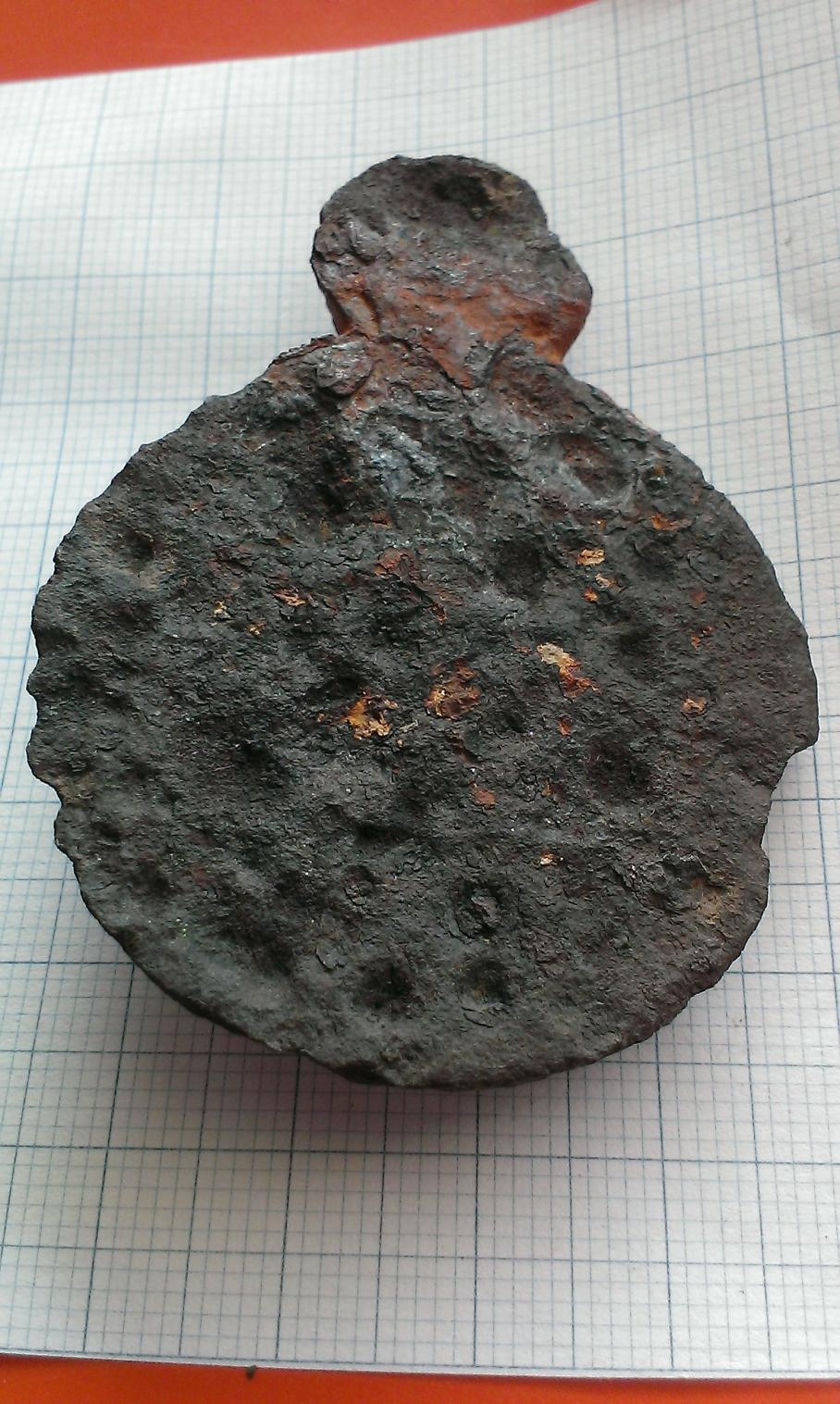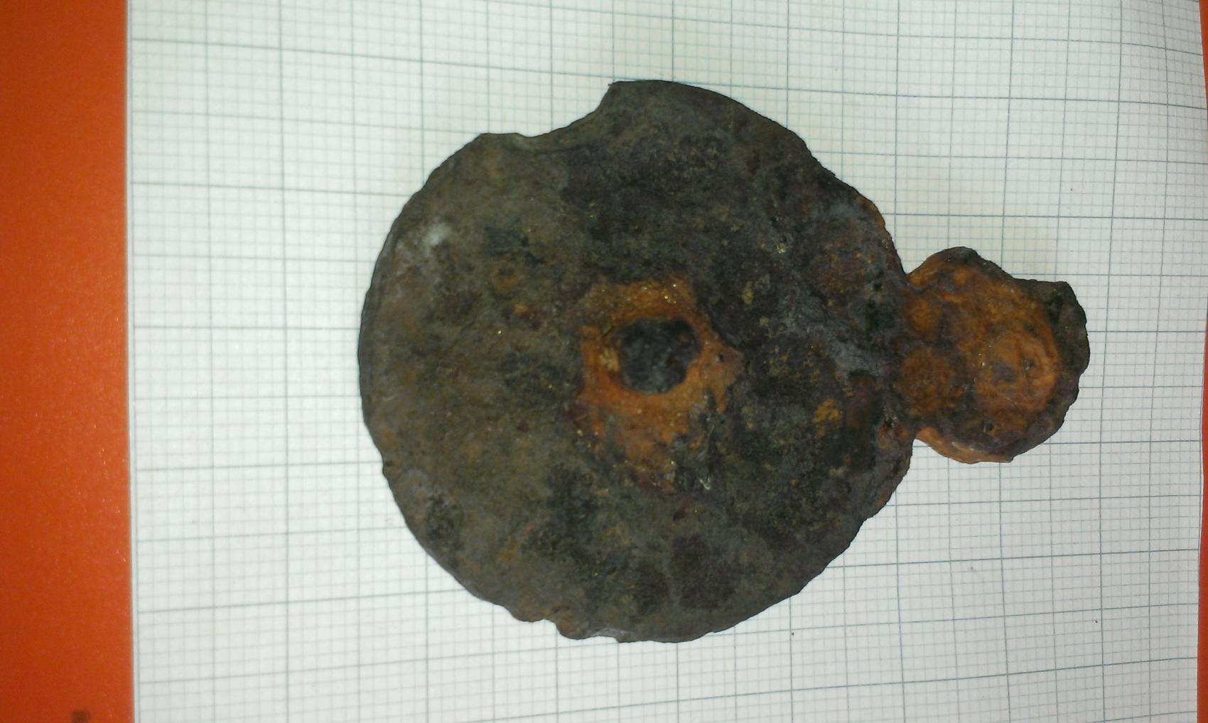 Die größe sieht man am Millimeterpapier. Es ist aus Eisen , das sieht man aber auch.Ich hatte es in der Lyse,das hilft aber nicht weiter.Scharfe Bilder von allen Seiten. Mehr Infos habe ich nicht.Kommentar