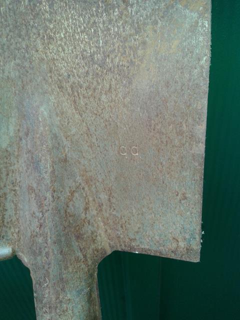 Das Blatt ist an den Stiel genietet und hat auf der rechten Seite eine Tritthilfe. Links scheint es diese nicht gegeben zu haben. Man erkennt nichts.